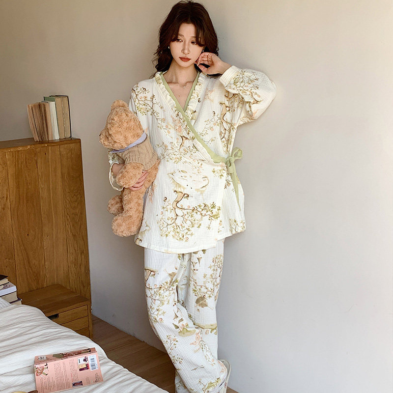 空气棉月子服秋冬季纯棉产后12月份全棉吸汗喂奶产妇哺乳孕妇睡衣