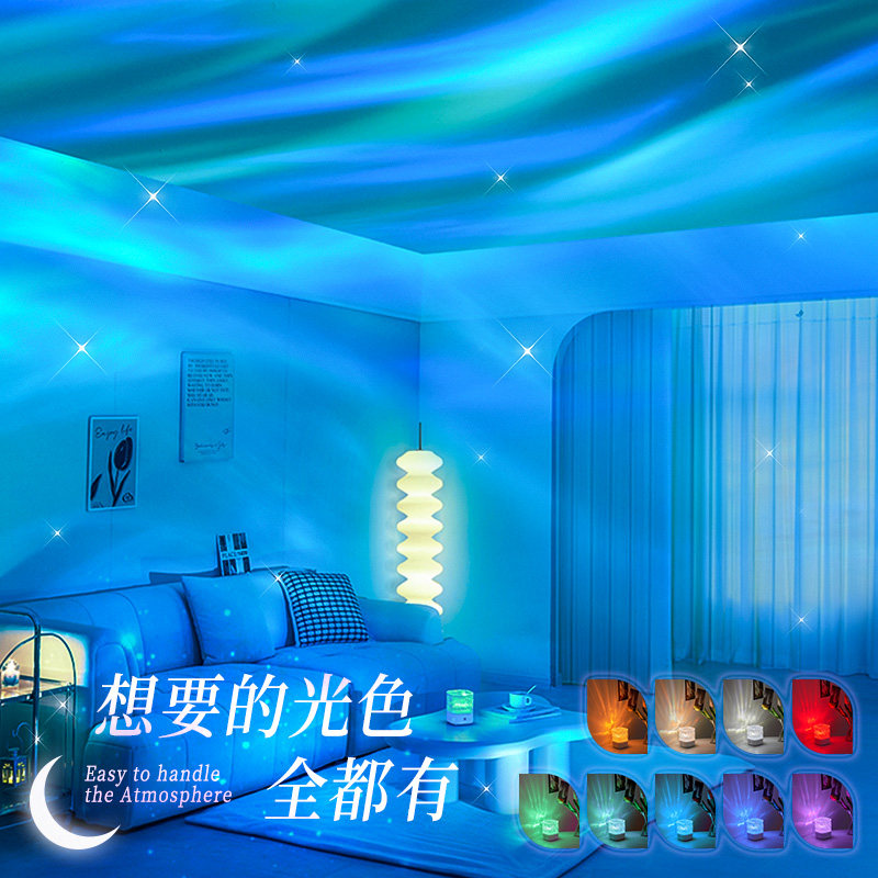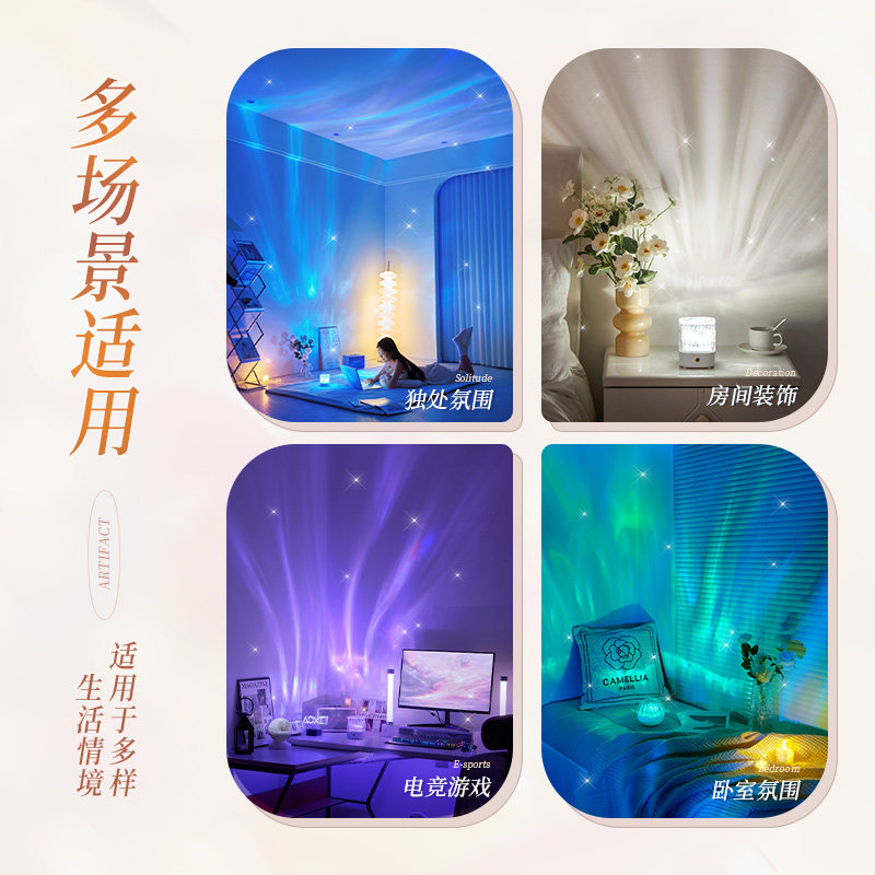 水波纹极光投影小夜灯气氛围感情调台灯卧室生日礼物浪漫创意梦幻