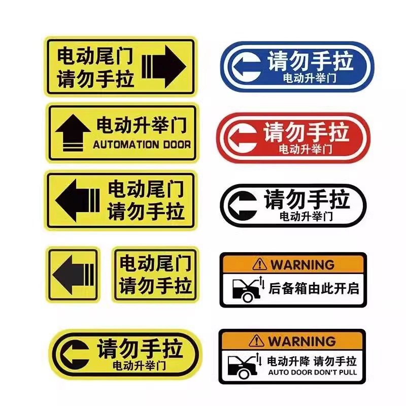 电动尾门警示贴请勿手拉电动升降门车贴电动升举门提示汽车贴纸