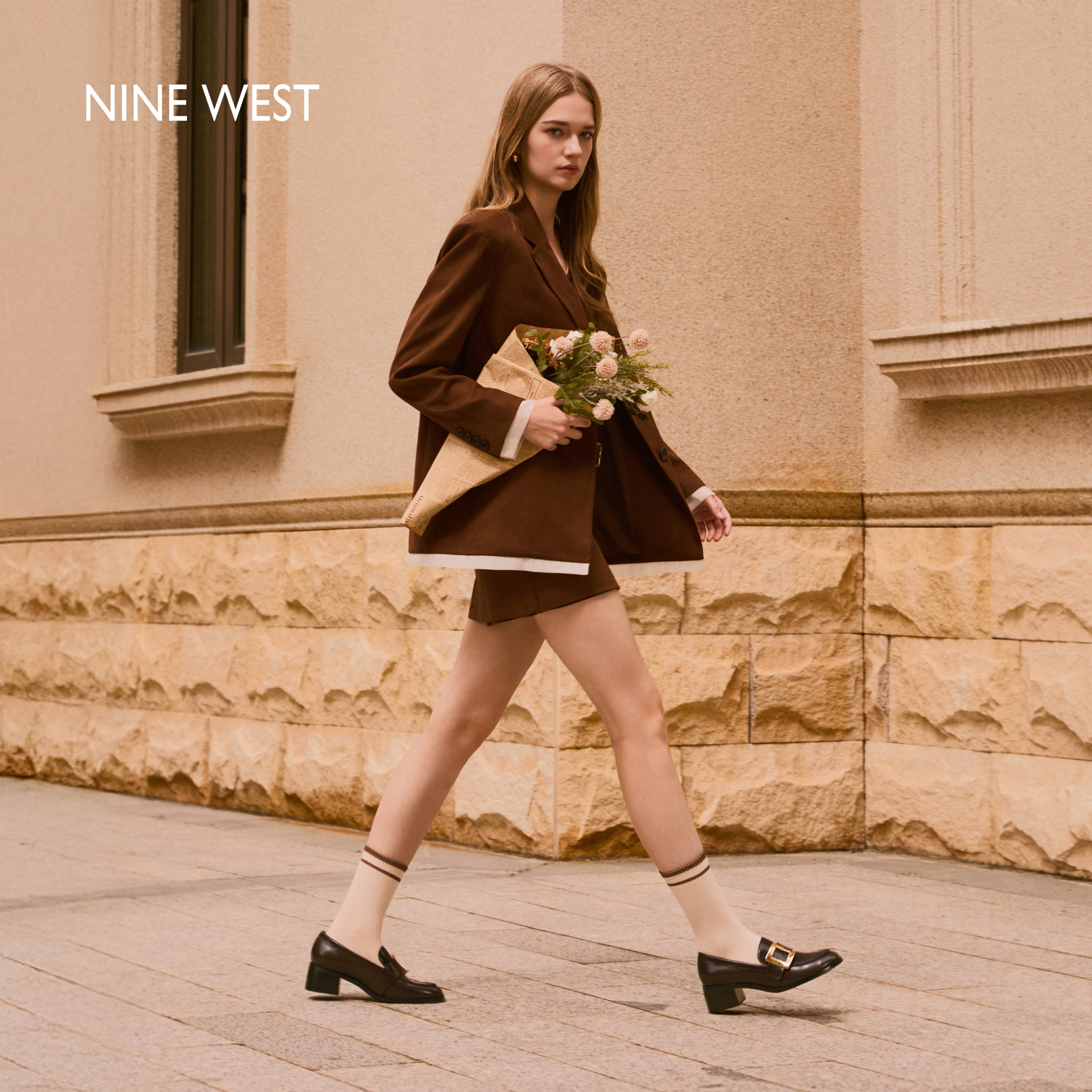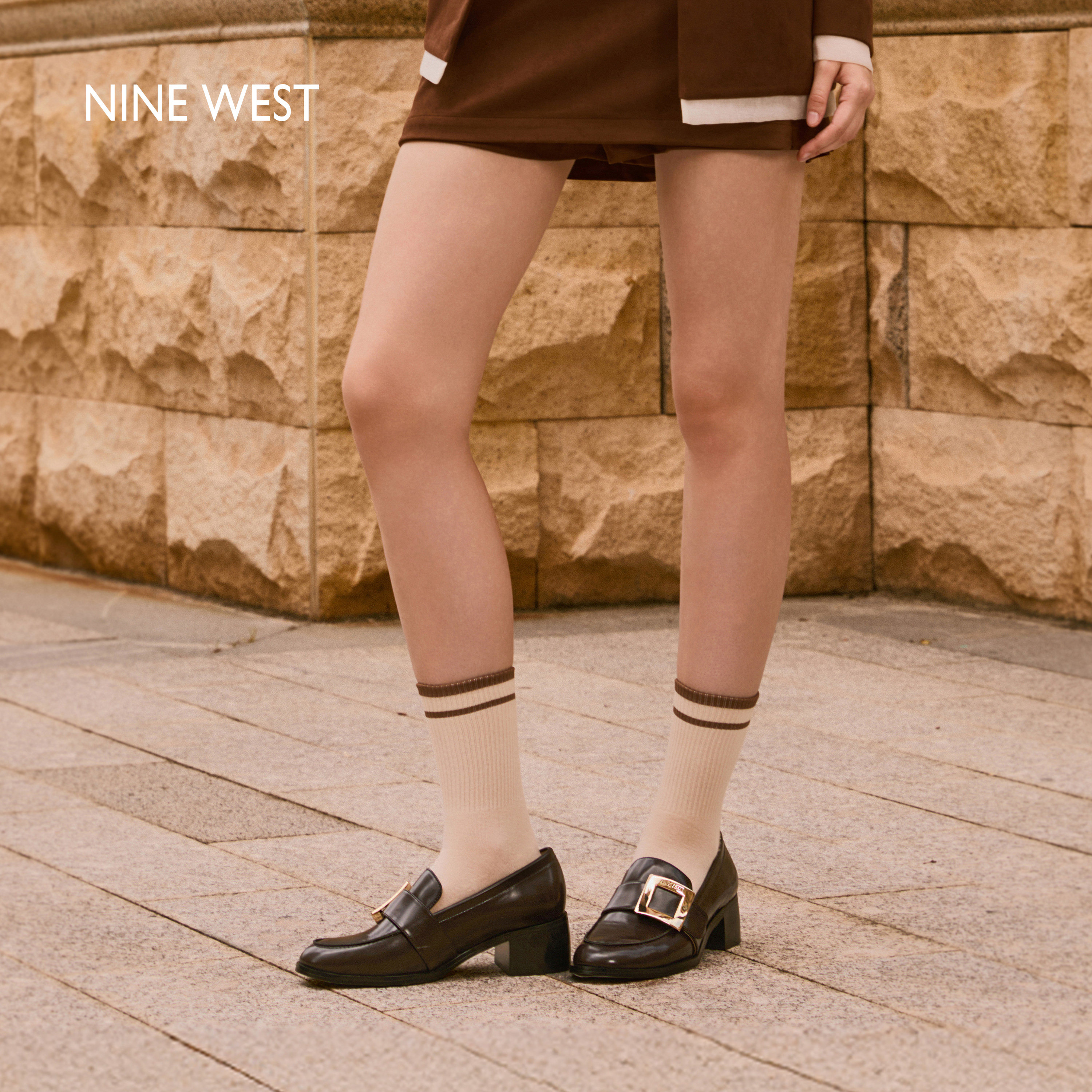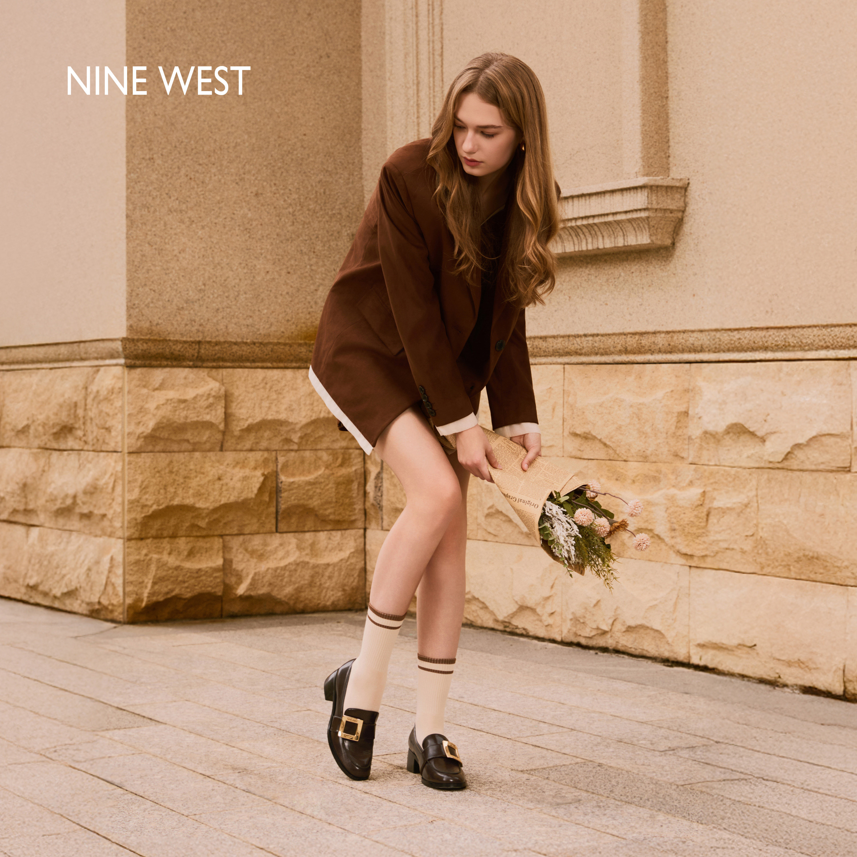 Nine West/玖熙复古搭扣乐福鞋女2025秋冬新款粗跟小皮鞋英伦风