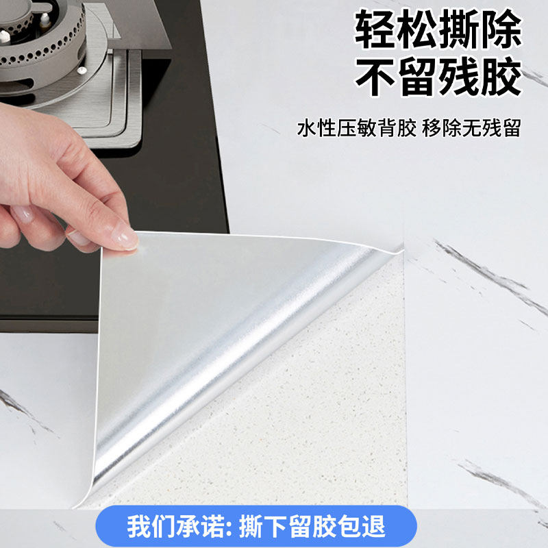 厨房防油贴纸防火耐高温灶台防水墙壁纸加厚自粘橱柜防潮铝箔锡纸