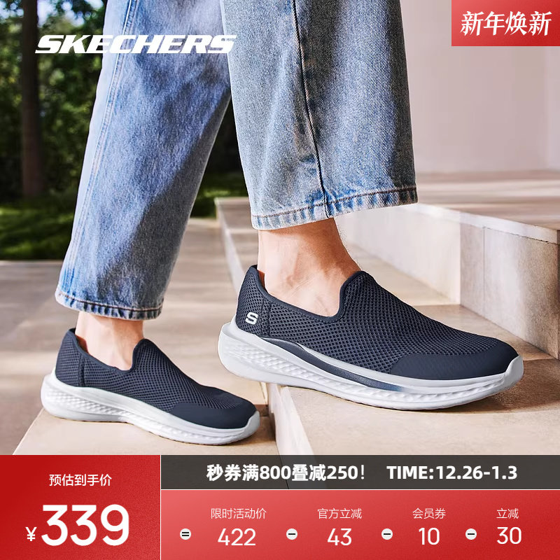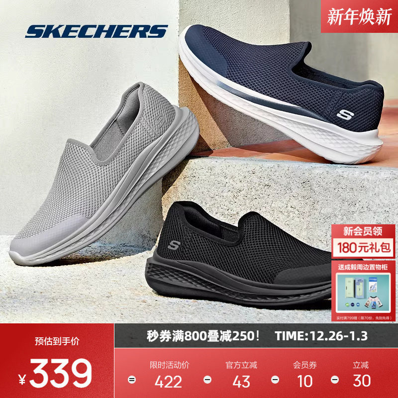 斯凯奇轻弹健步一脚蹬新款男士透气网布潮流轻薄舒适耐穿简约鞋子