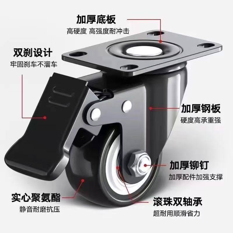 承重万向轮滑轮子静音脚轮3寸带刹车轮子移动滚轮承重轮推车丝杆