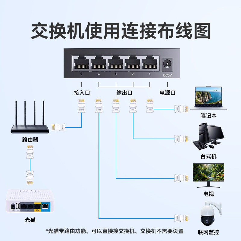 千兆交换机5/8五口宽带家用监控扩展分流器