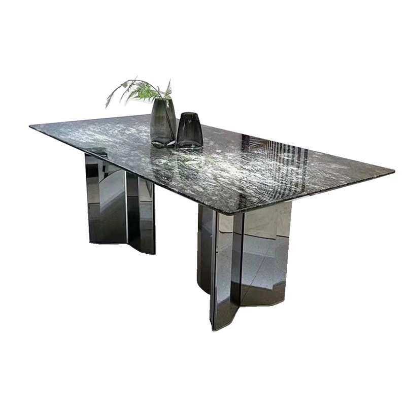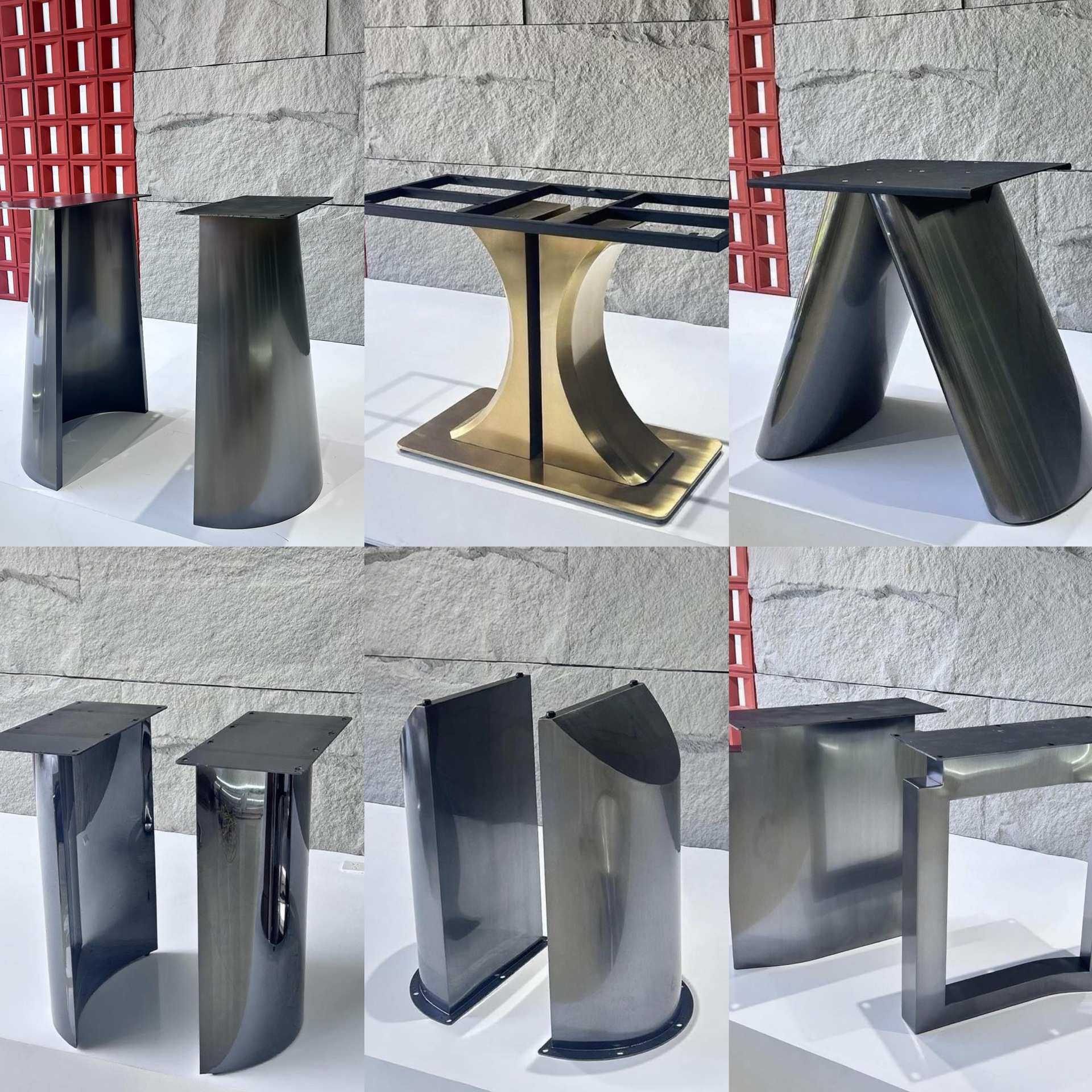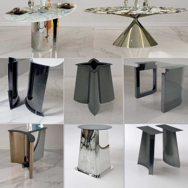 镜面不锈钢岩板餐桌腿轻奢餐台五金桌腿支架奶茶店钛金桌腿大理石