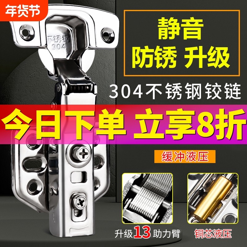 304不锈钢阻尼液压缓冲铰链弹簧飞机橱柜门五金配件合页三段力
