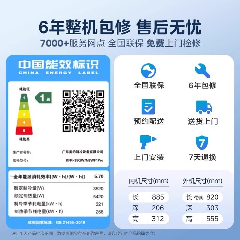 美的空调酷省电Pro大1匹1.5匹一级能效变频冷暖家用挂机官方正品