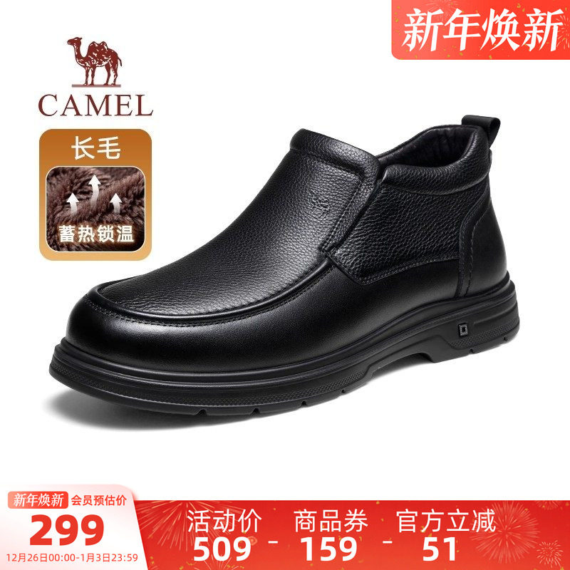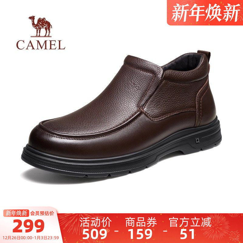 骆驼男鞋2025冬季新款真皮爸爸鞋防滑舒适加绒保暖休闲商务皮鞋男