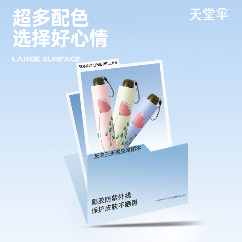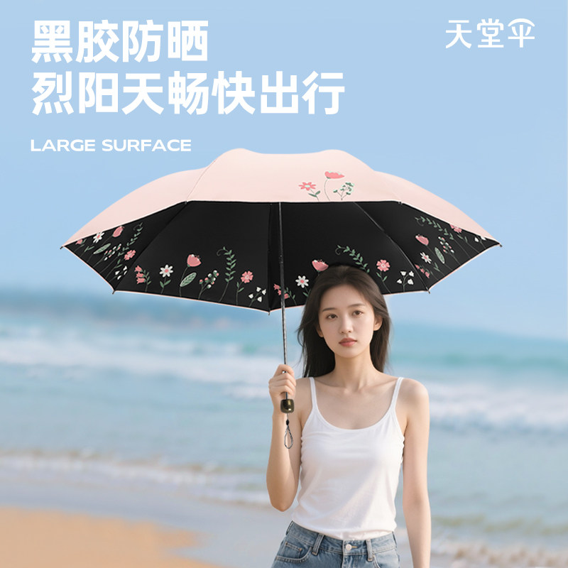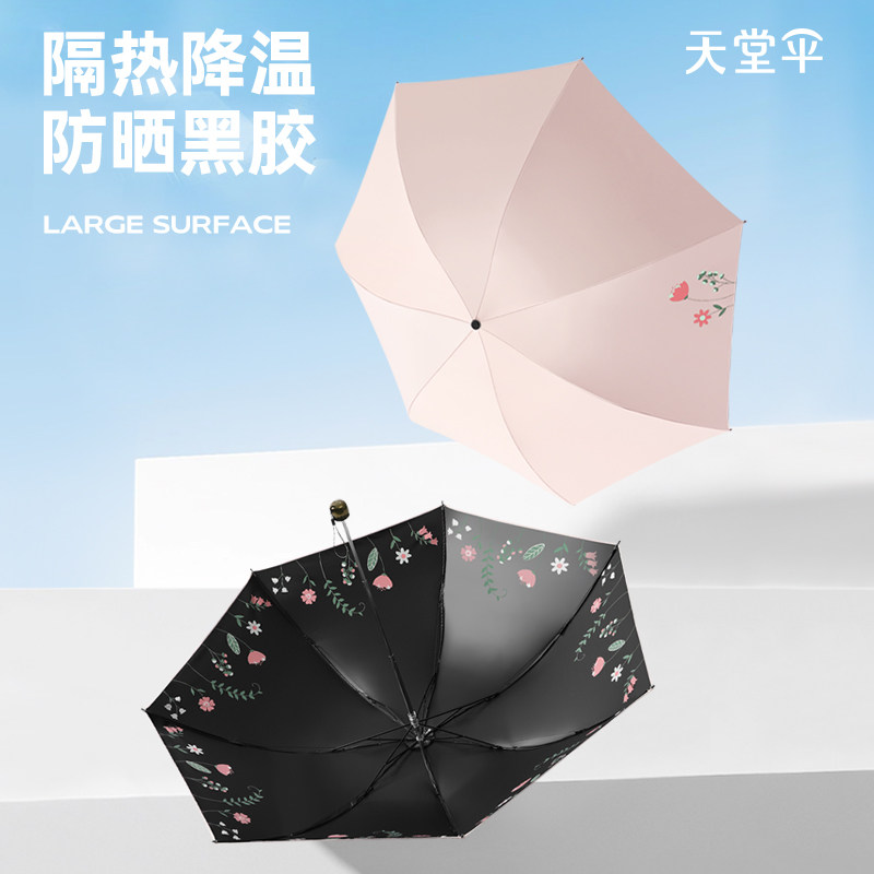 天堂伞太阳伞女防紫外线遮阳伞轻巧两用晴雨伞折叠黑胶防晒小清新