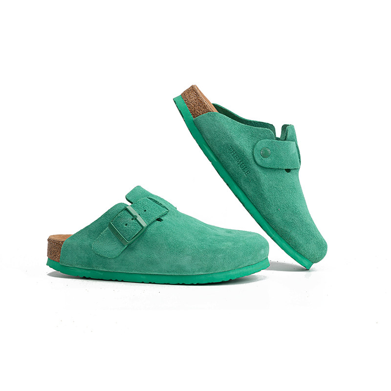 限时伴价78!真皮勃肯鞋2025新款包头半拖鞋女夏外穿平底博肯鞋男