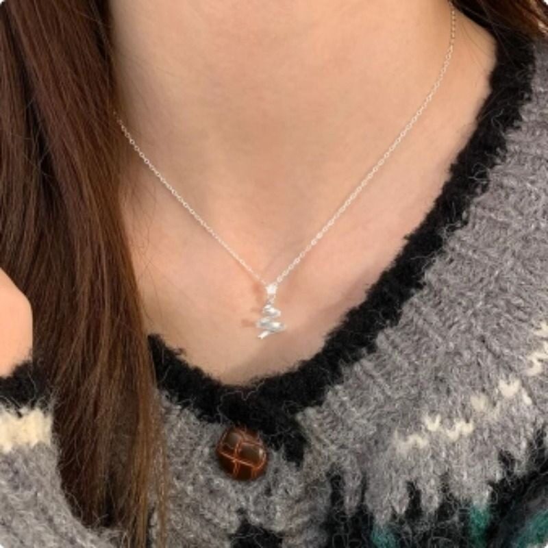 925纯银圣诞树项链女款轻奢小众设计高级感锁骨链圣诞节礼物马蹄