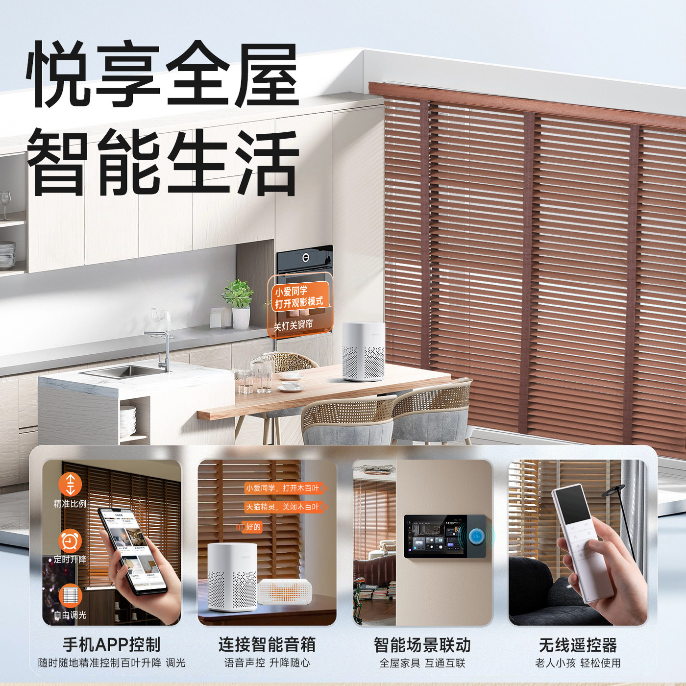 贵品电动智能语音中式古风实木百叶窗帘遮光书房客厅卧室木质升降