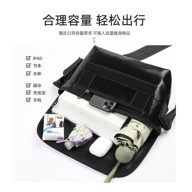 2025新款男士斜挎包防水运动单肩包休闲大容量胸包磁吸扣通勤时尚