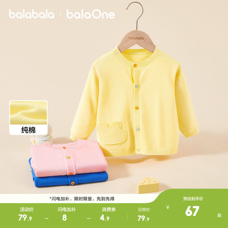 巴拉巴拉童装宝宝毛衣外套婴儿针织衫2026新款春装儿童薄开衫毛衫