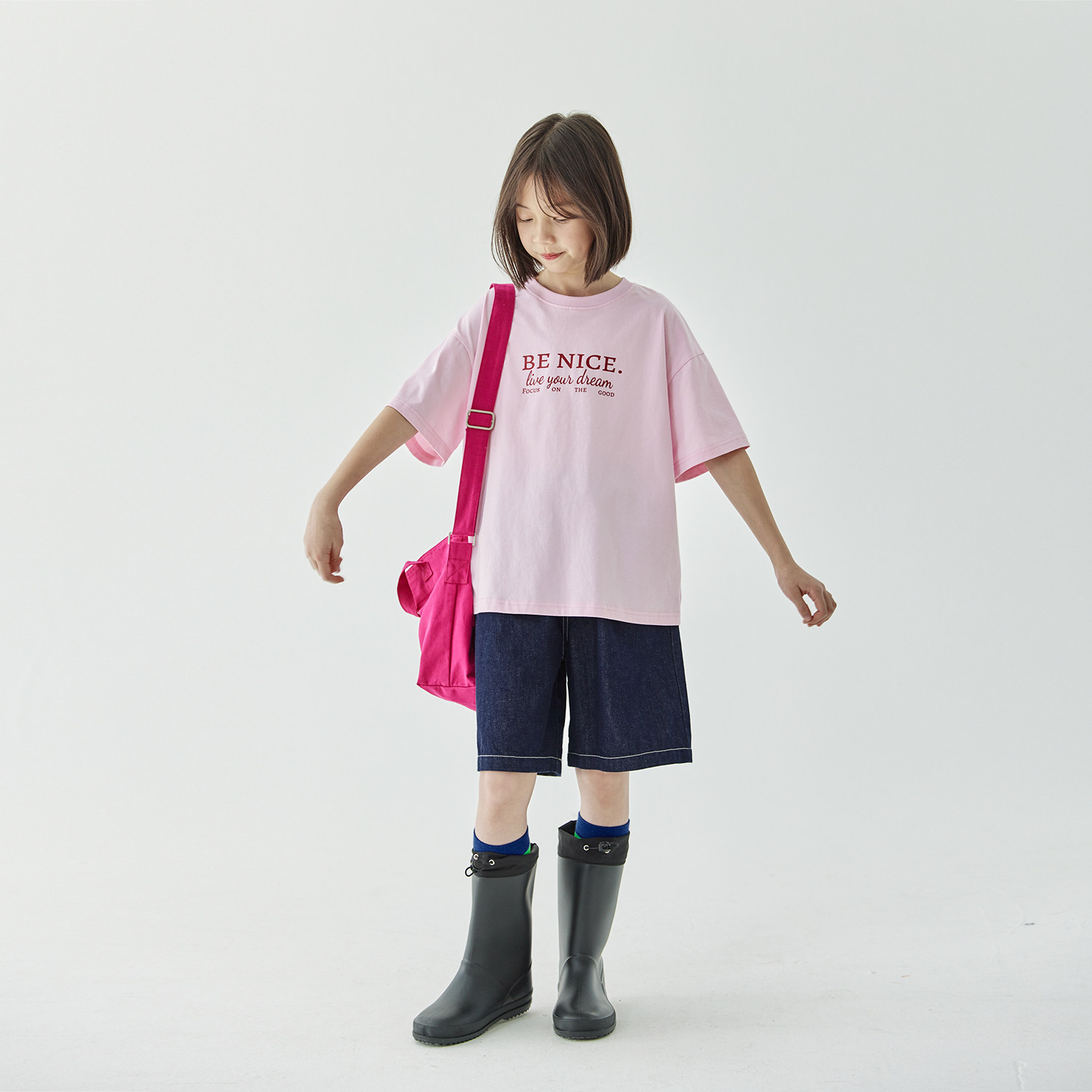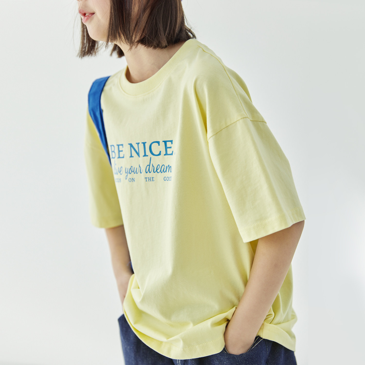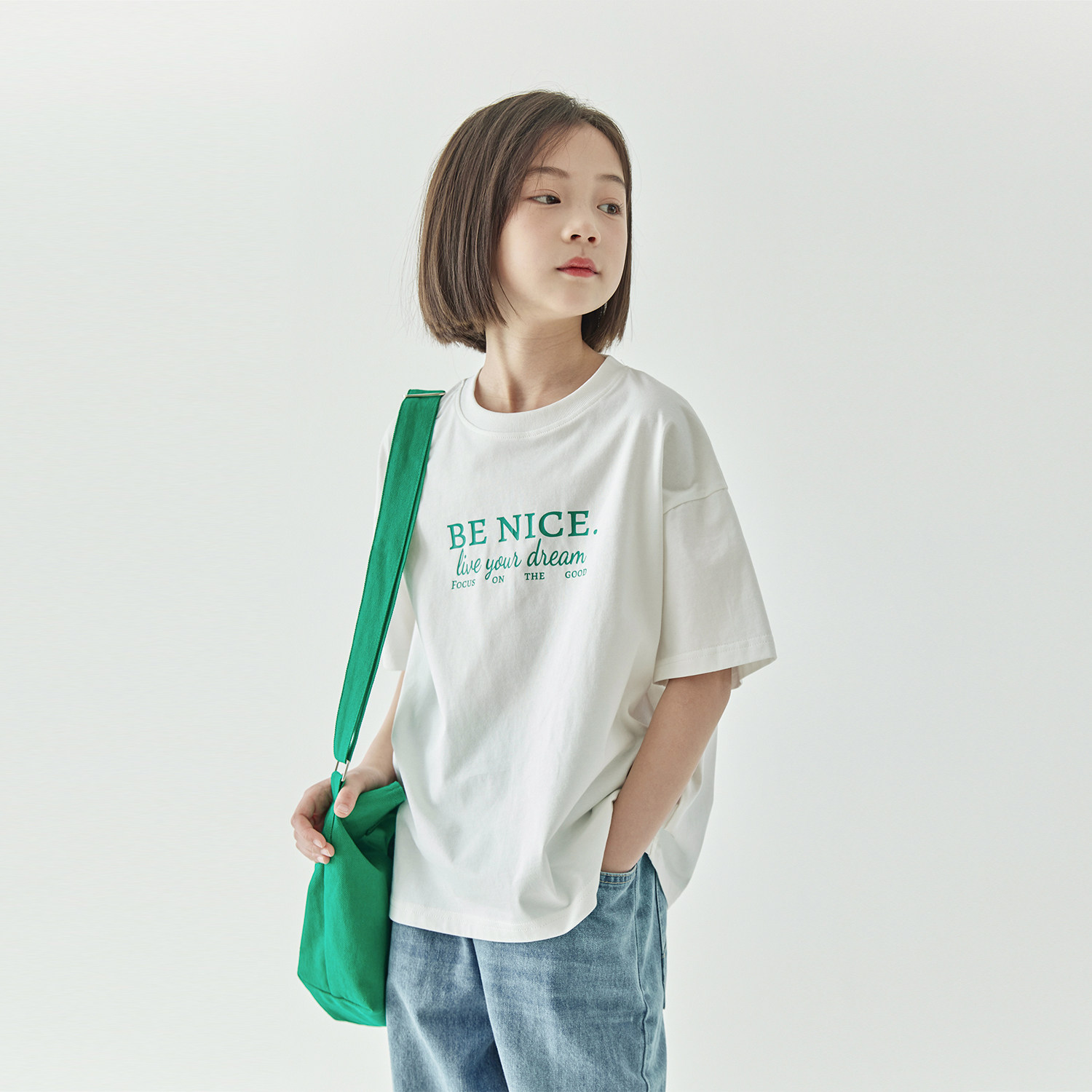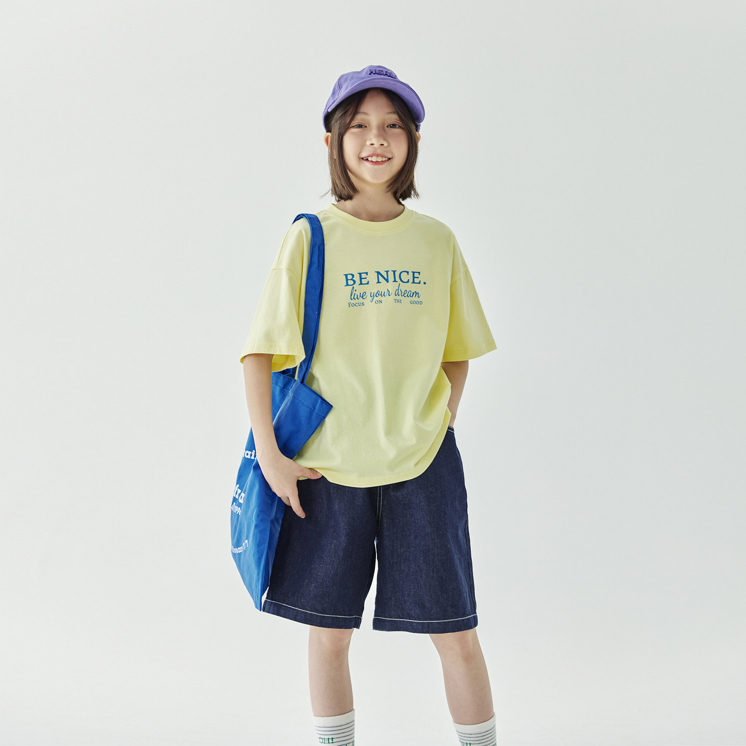 棵初25夏新品儿童三色字母短袖T亲子款基础上衣全棉宽松圆领t恤