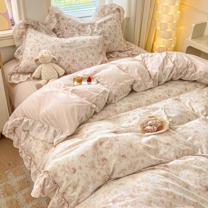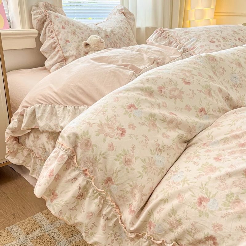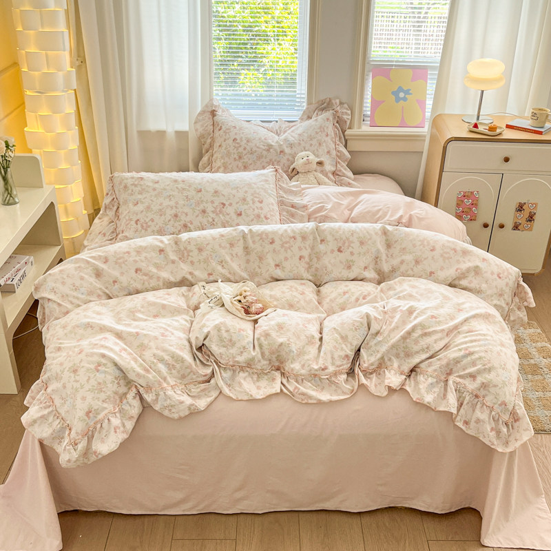 A类双层纱床上四件套纯棉全棉新款田园床单件被套被罩宿舍三件套4