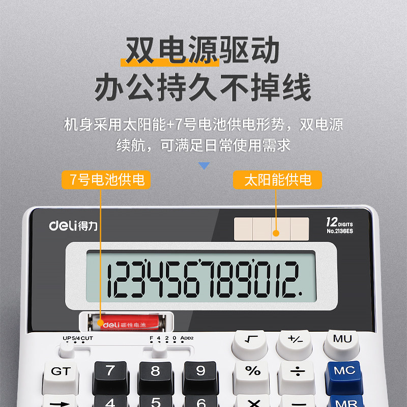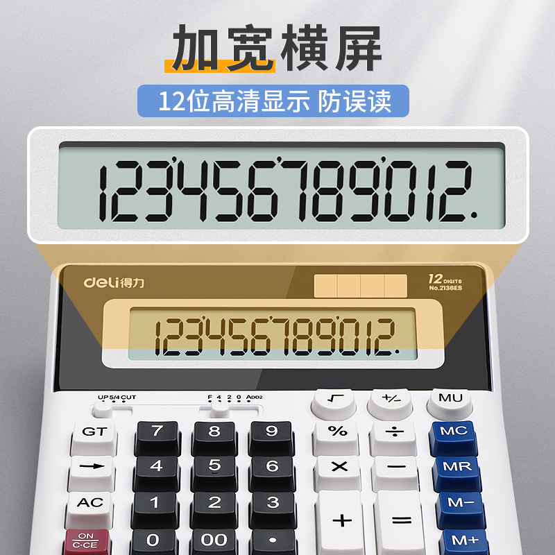 得力财务计算器办公用语音款计算机办公室会计专用计算器带声音电子太阳能大屏幕商务金融办公用品正品机械
