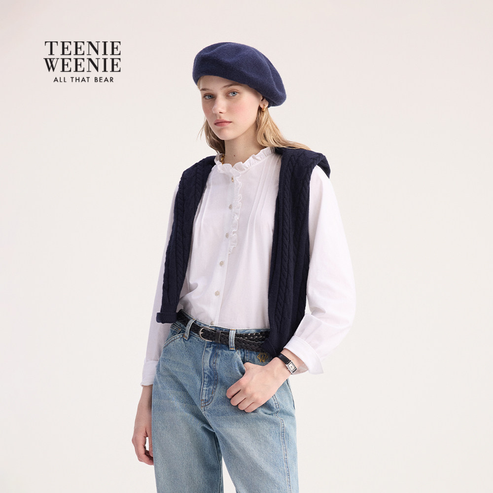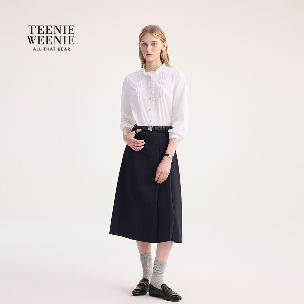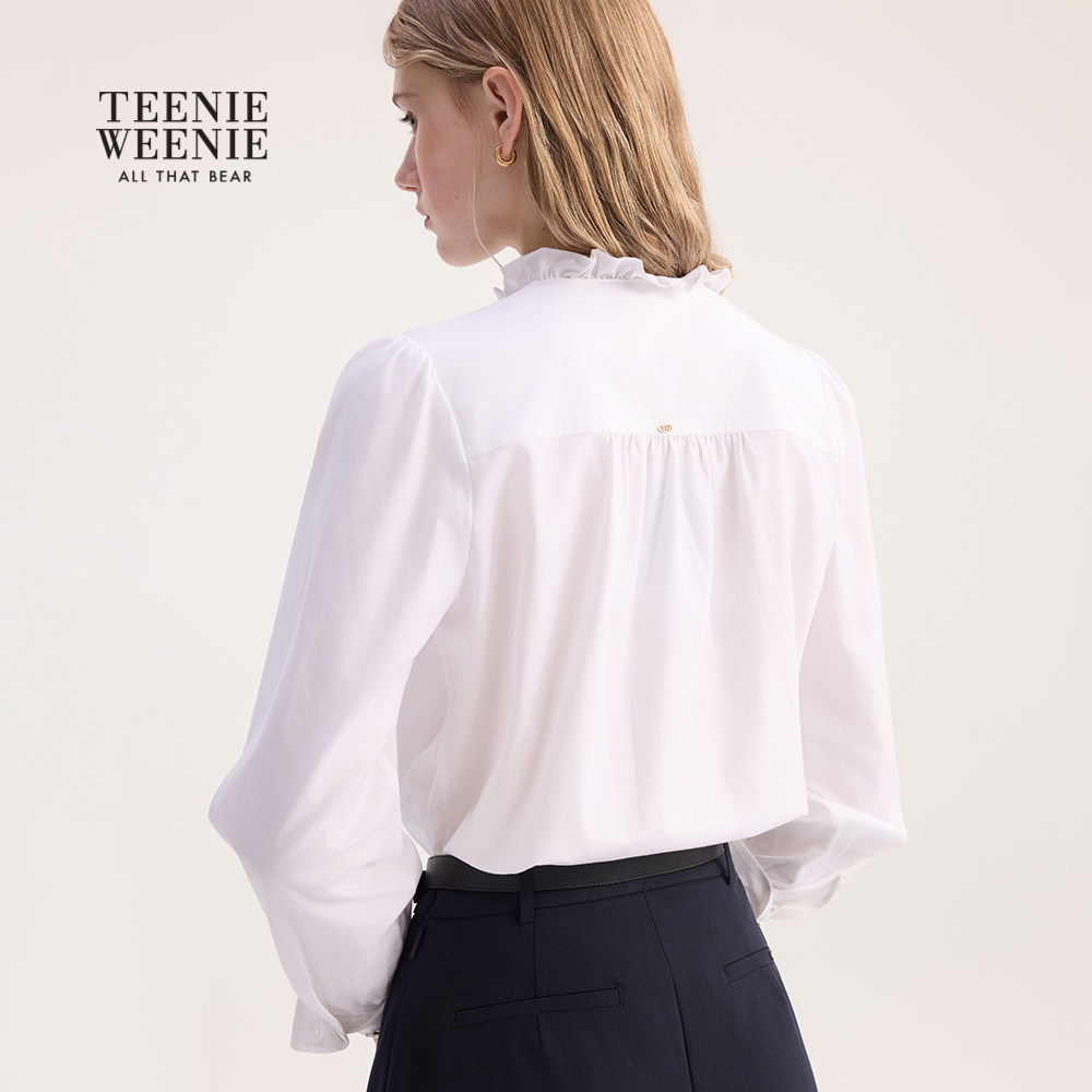 TeenieWeenie小熊女装衬衫秋冬季简约优雅甜美少女感木耳边领衬衣