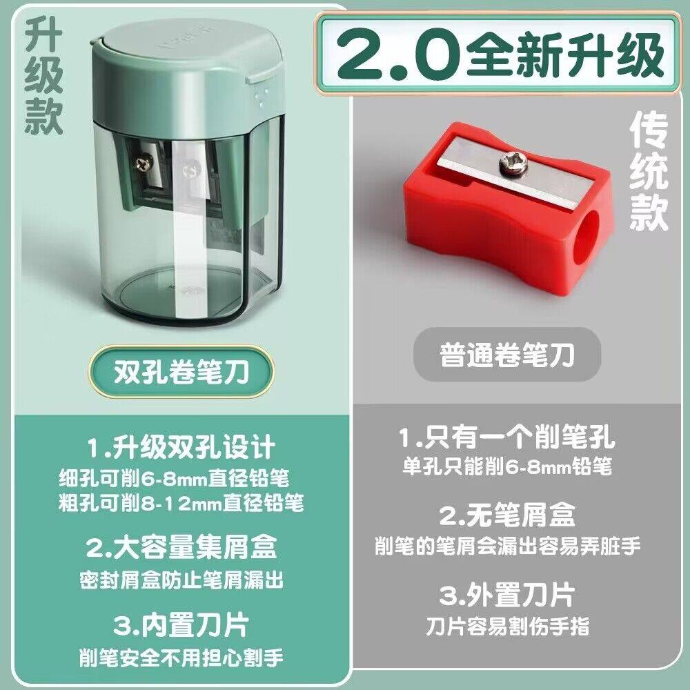 晨光双孔卷笔刀转笔削笔刀儿童小学生专用迷你小型便携式粗三角洞洞铅笔大口径加粗铅笔削笔器自动铅笔刀手动