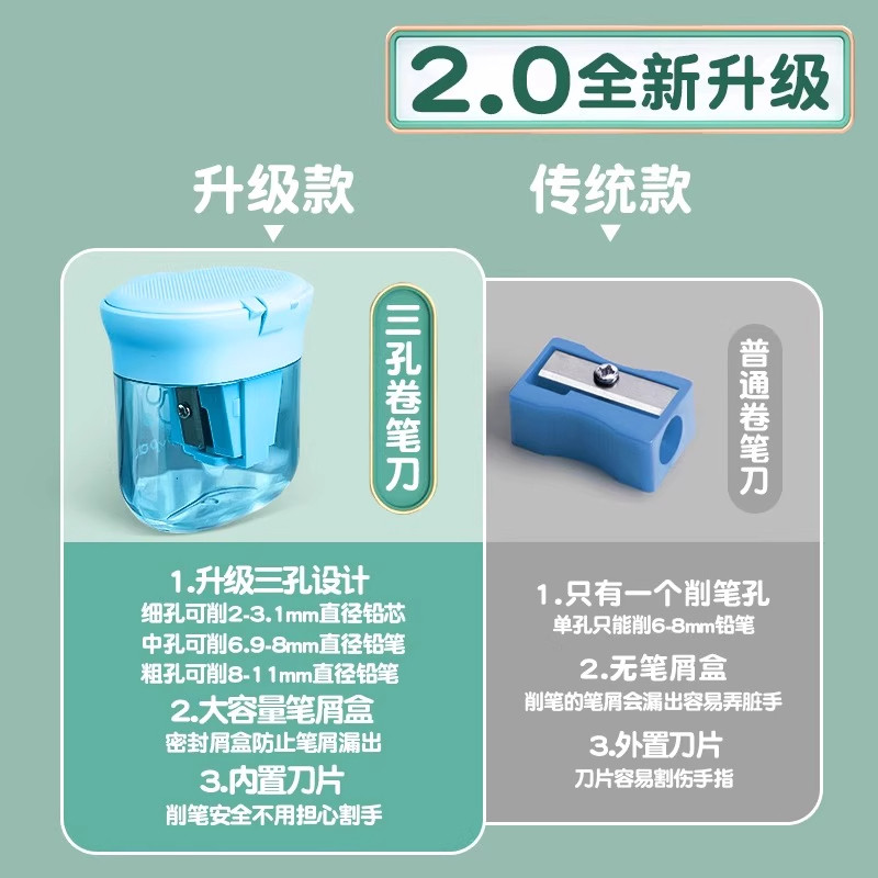 得力三孔卷笔刀粗细都能削儿童卷笔刀三孔转笔削笔刀小学生专用手动刨笔机加粗铅笔刀削器大口径多功能旋笔刀