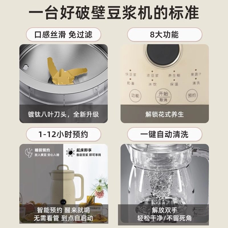 德国品质静音豆浆机家用小型多功能全自动加热免过滤破壁机果汁机