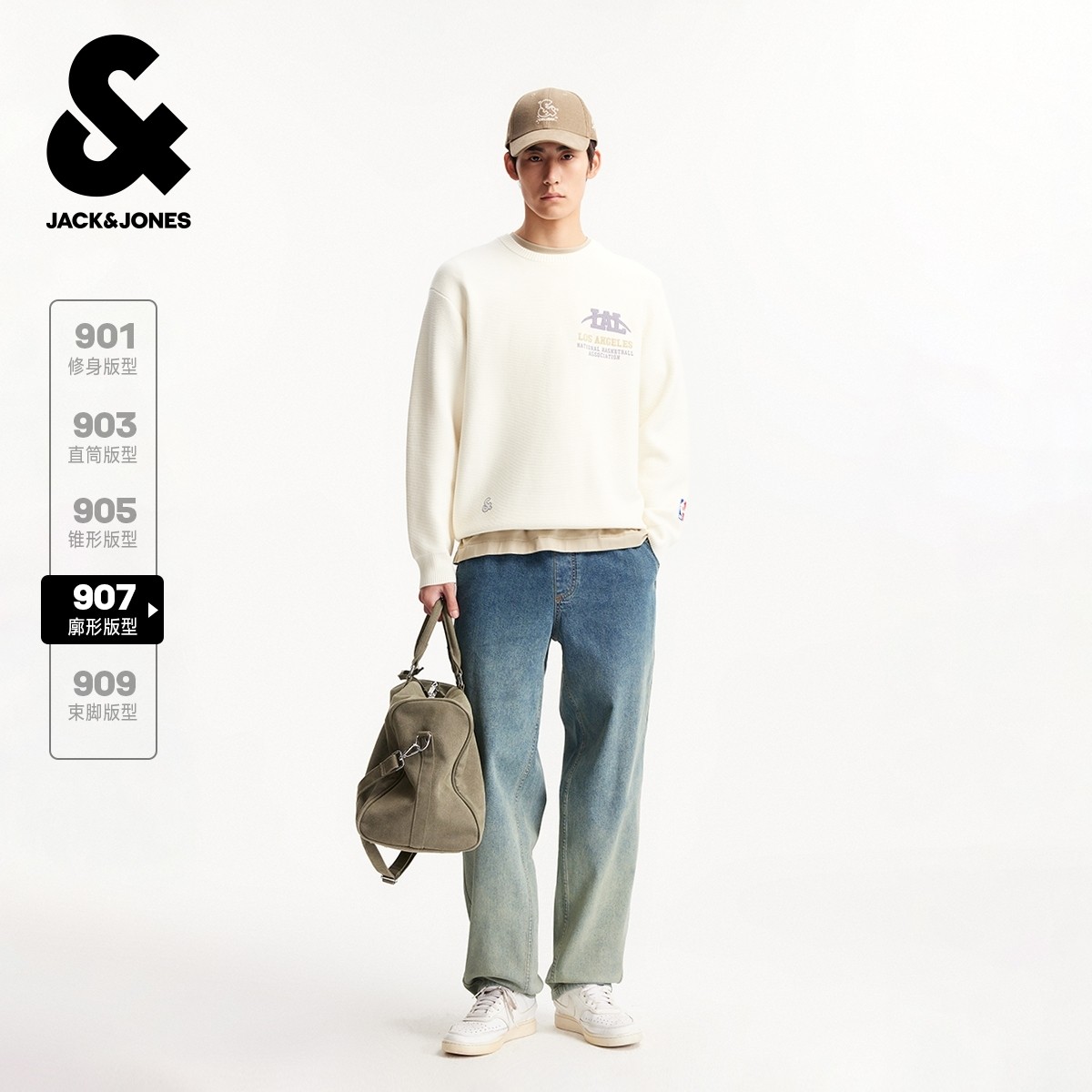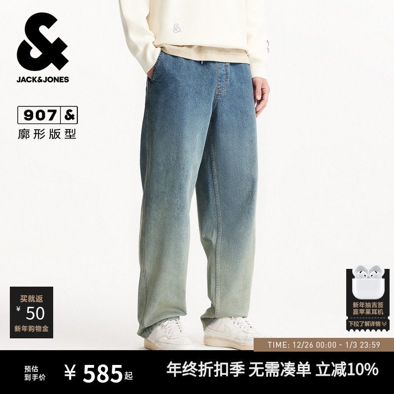 杰克琼斯春季男装牛仔裤子廓形松紧抽绳双侧插袋时尚百搭潮流下装