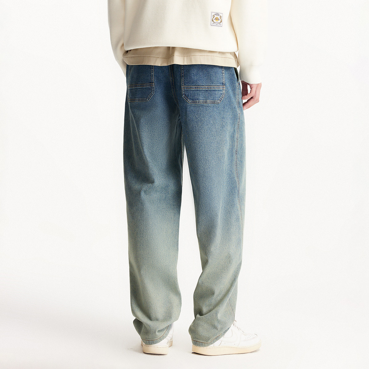 森马牛仔裤男猫须做旧复古宽松直筒裤2025秋冬新款长裤子经典质感