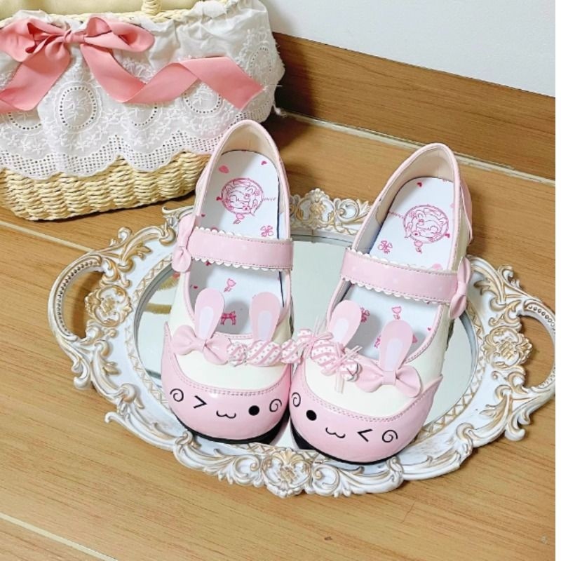 lo鞋平底单鞋女甜美可爱粉色现货蝴蝶结大头小猫jk制服鞋子