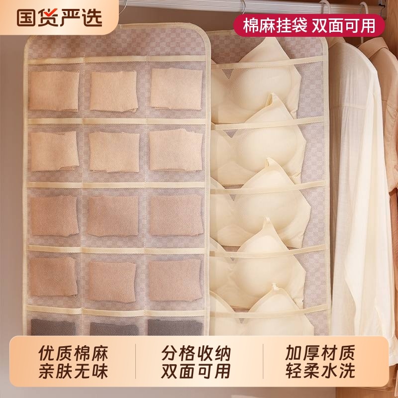 日本棉麻内衣内裤收纳袋挂袋壁挂衣柜挂式袜子放内衣裤整理神器