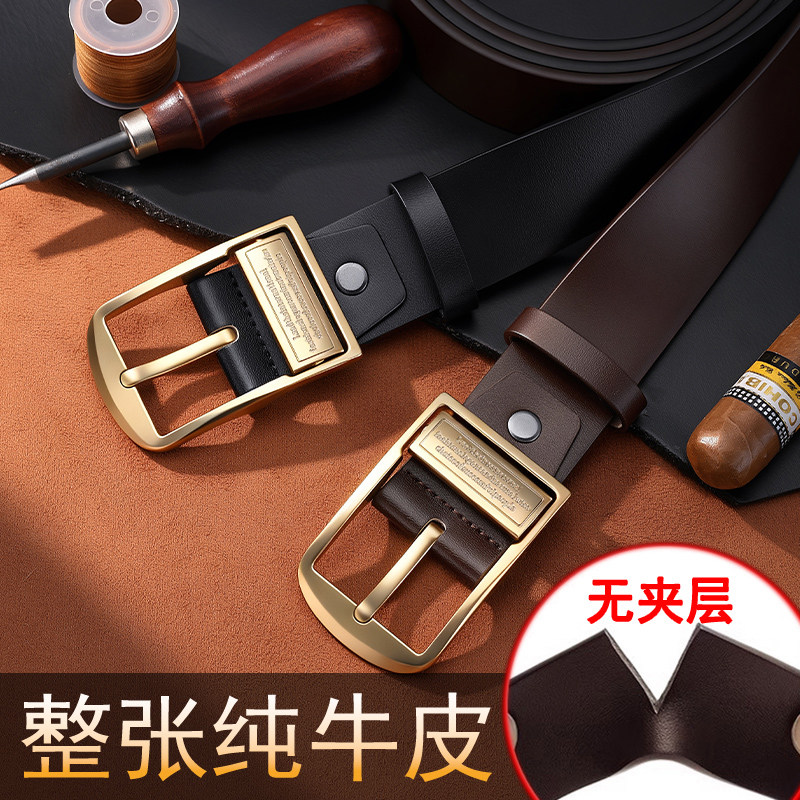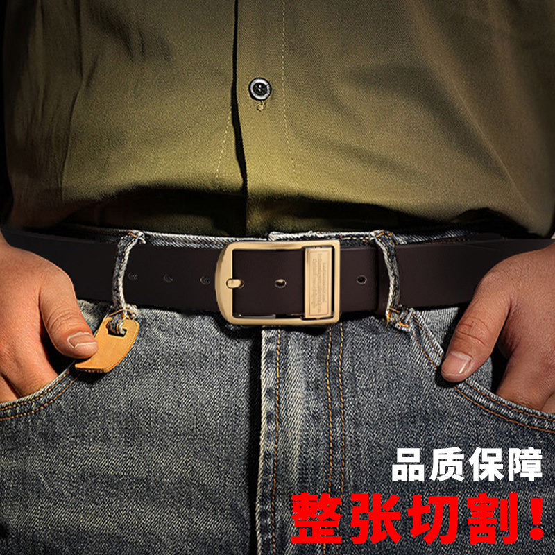 纯牛皮皮带男真皮休闲裤带男牛皮带年轻人针扣牛仔中年腰带男青年