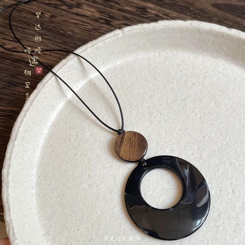 现货橡果森系植物干果毛衣链长款风配饰男女手工编织棉麻服饰项链