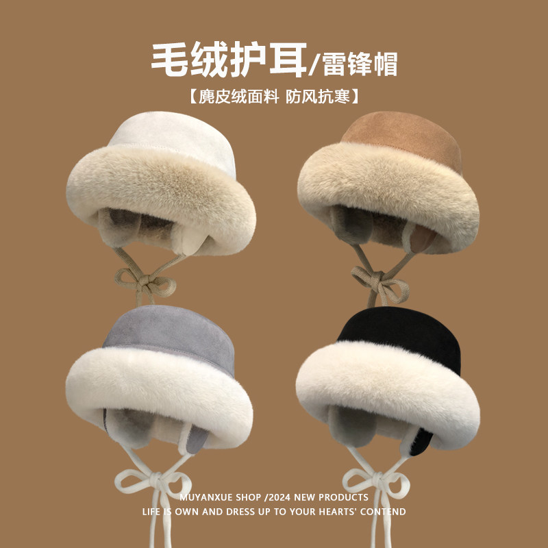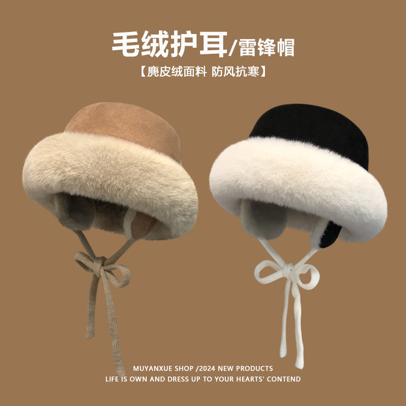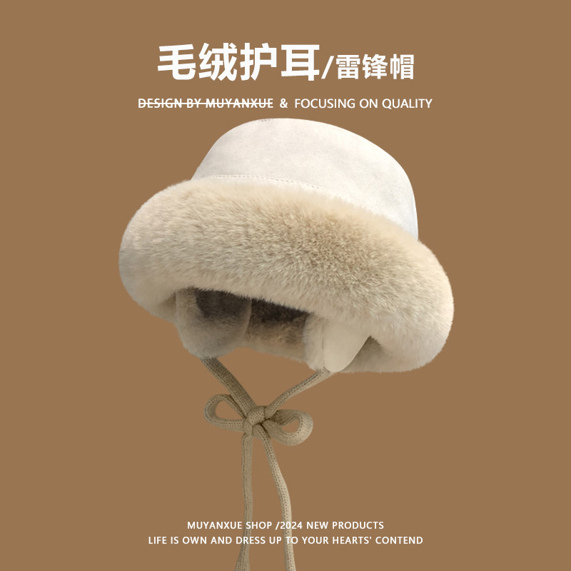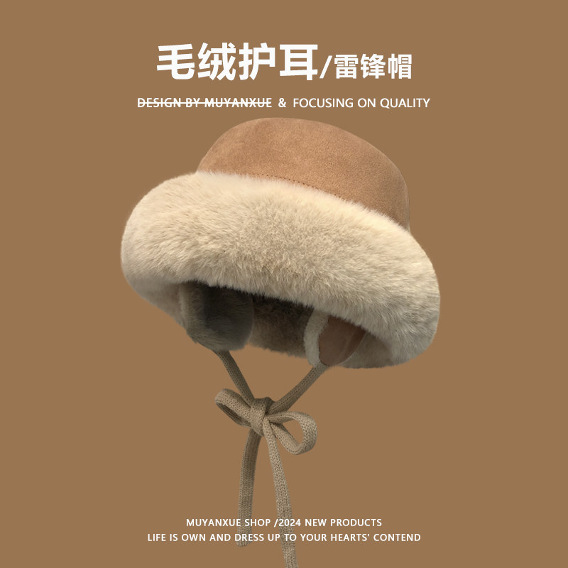 加厚防寒雷锋帽女冬季加绒保暖棉帽电动车护耳毛绒渔夫帽骑车防风