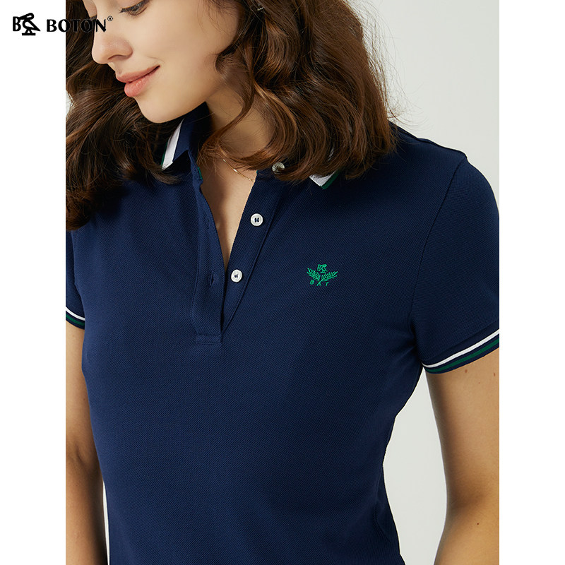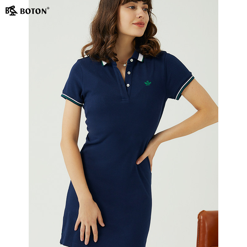 波顿夏季高级感女装短袖Polo连衣裙2025新款纯棉休闲系腰显瘦裙子
