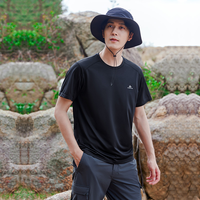 伯希和速干T恤男透气圆领黑色休闲短袖上衣户外徒步运动半袖内搭