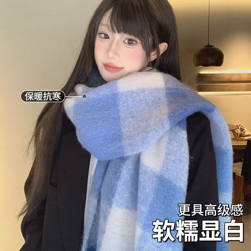 针织蓝色围巾女护肩保暖秋冬韩系氛围感高颜值百搭显白加大厚披肩