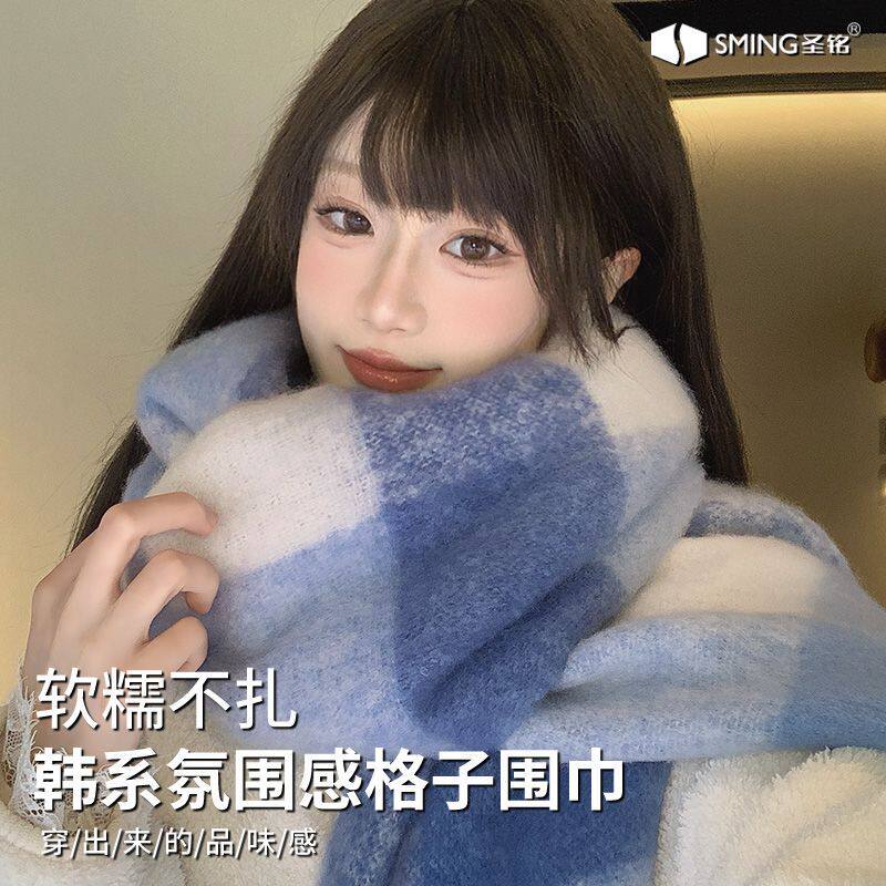 三福格子围巾韩系高级感保暖围脖披肩两用旅游外搭女冬季2025新款