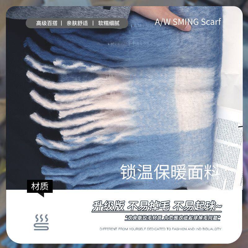 【王俊凯同款】骆驼围巾冬季女新年礼物保暖围脖男针织蓝色围巾