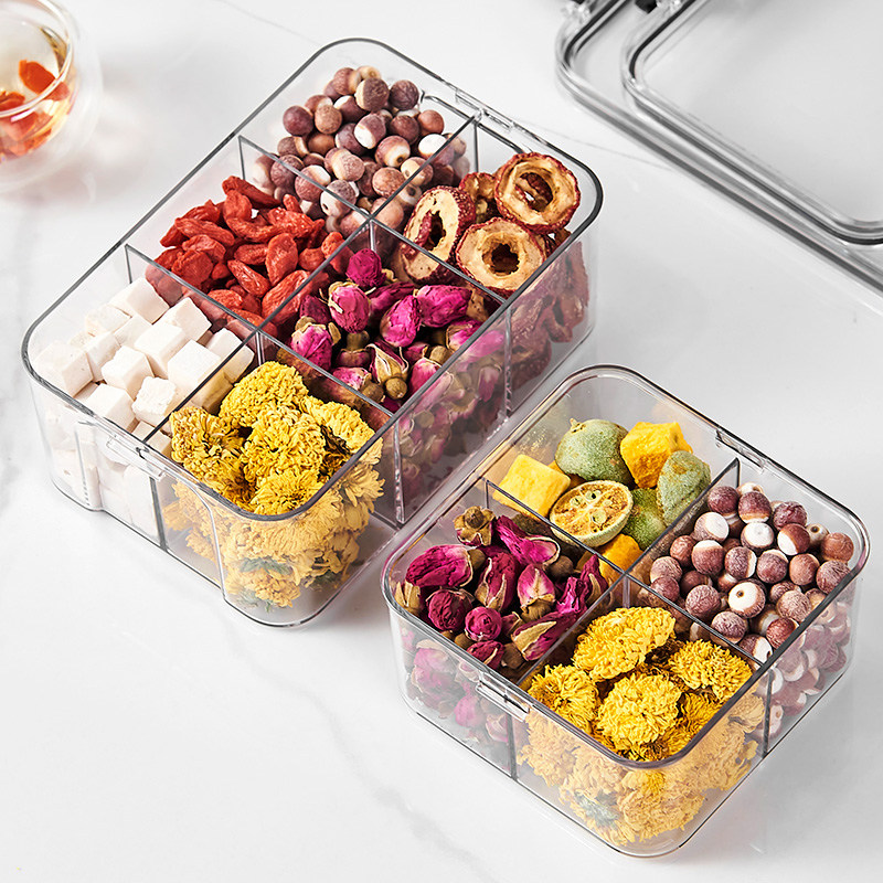 花茶叶茶收纳盒多格食品级收纳储存罐防潮中药五谷杂粮密封盒方形