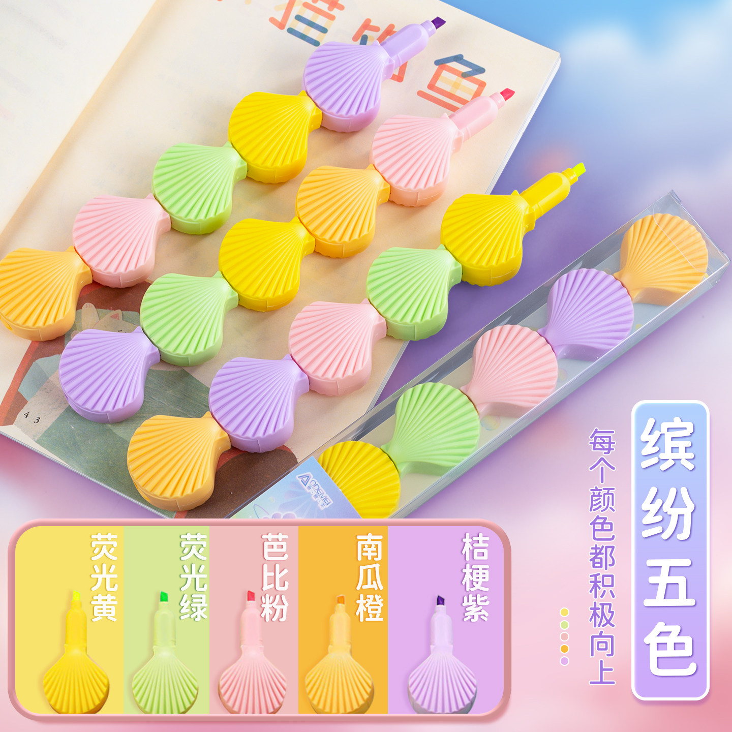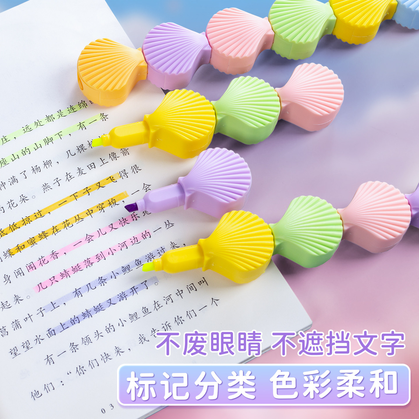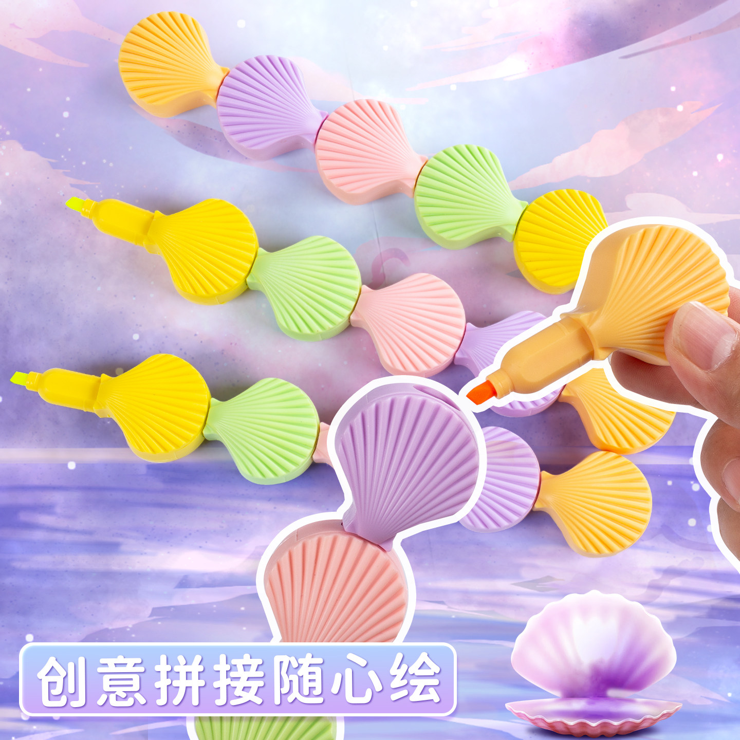 贝壳冰淇淋荧光笔小学生专用高颜值少女心划重点做笔记小仙女用创意拼接彩色记号笔套装学生趣味荧光标记笔