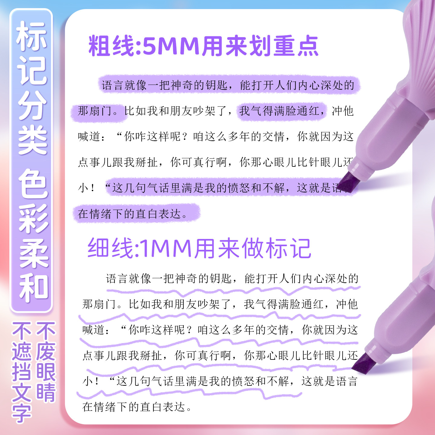 三年二班护眼荧光笔高颜值荧光标记笔学生用多色记号笔彩色划重点手帐手账笔做笔记本马卡龙淡色萤光笔银光笔