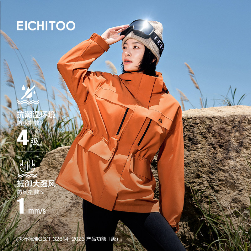 爱居兔防水耐磨冲锋衣女款户外登山服2025年秋冬季新款纯色短外套