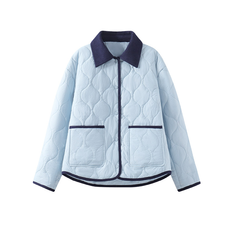 KCV真维斯轻薄棉服女2025新款拼接翻领秋冬菱格衬衫领夹棉外套女