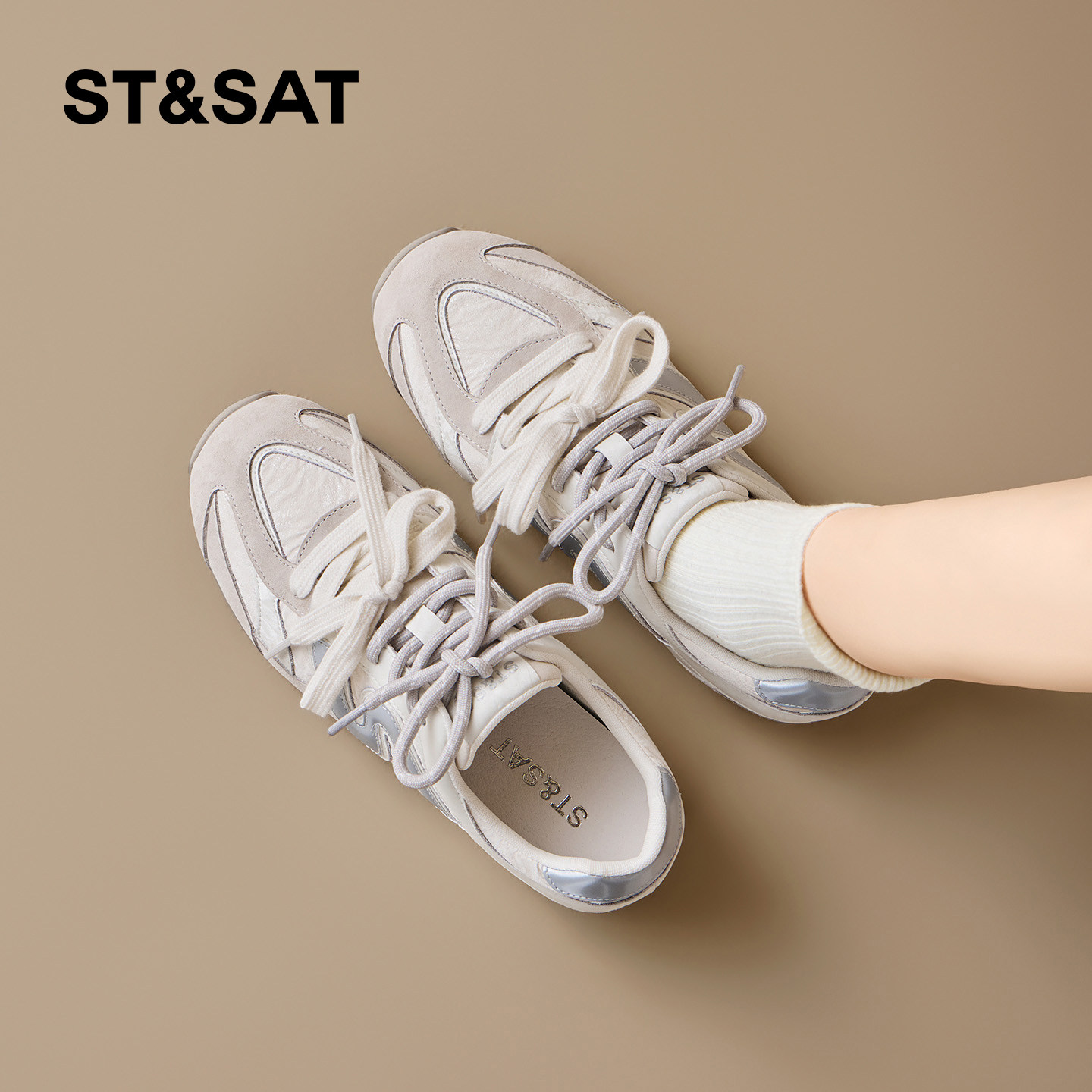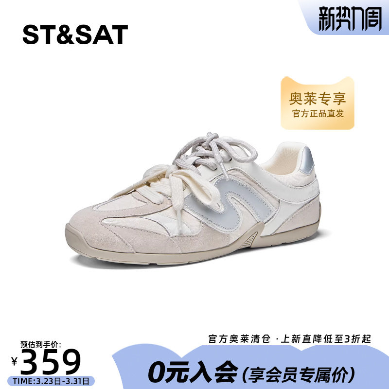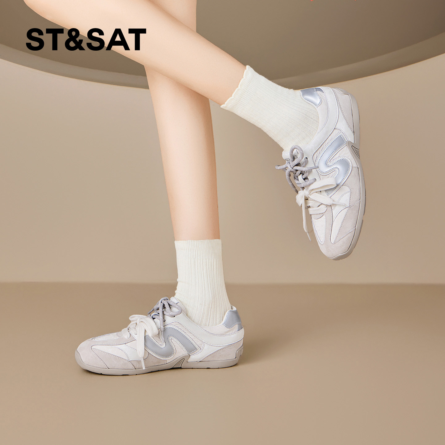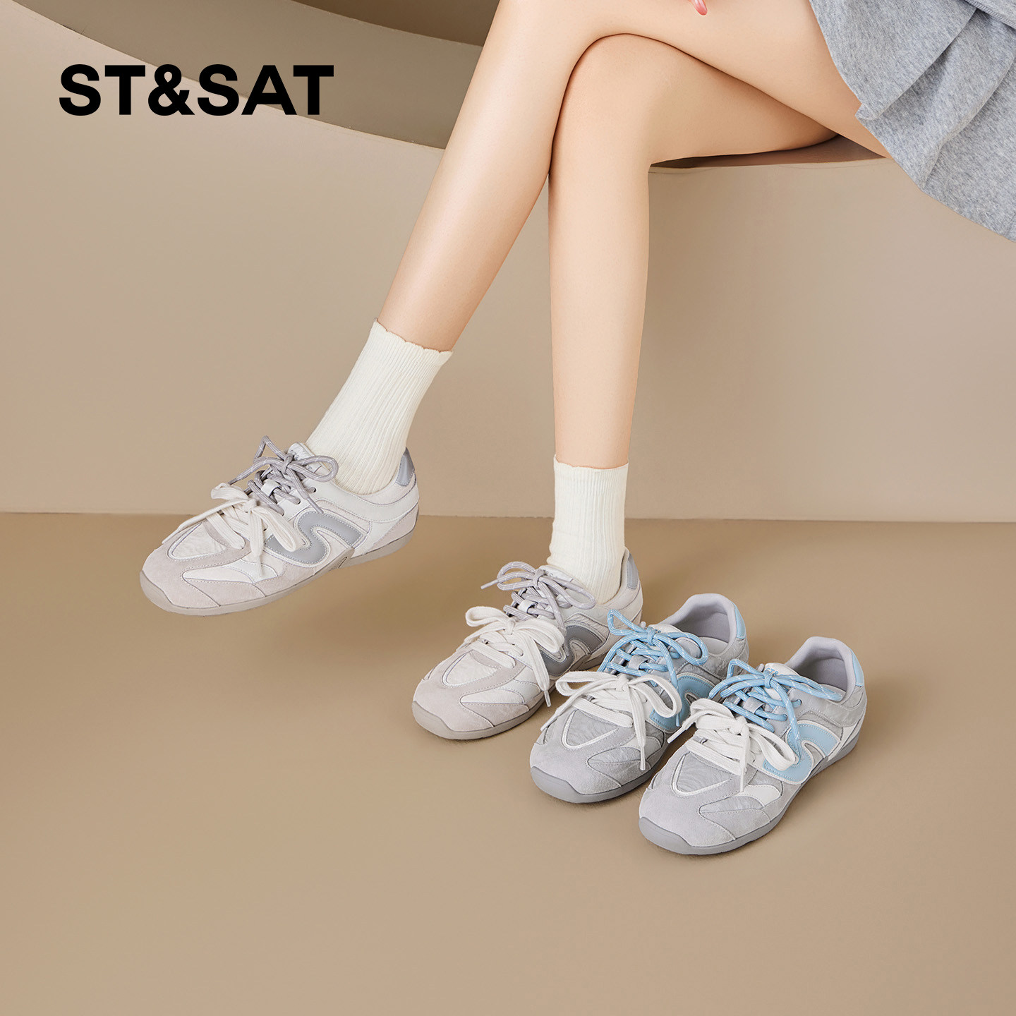 星期六拼色复古德训鞋女2026春季新款双鞋带显脚小舒适软底休闲鞋