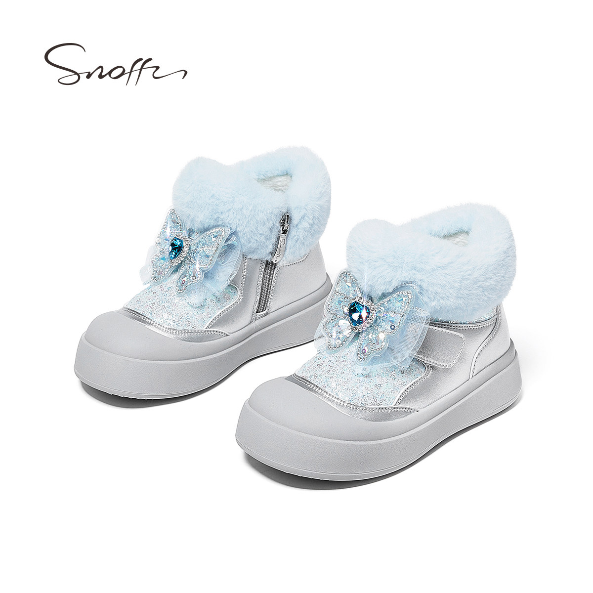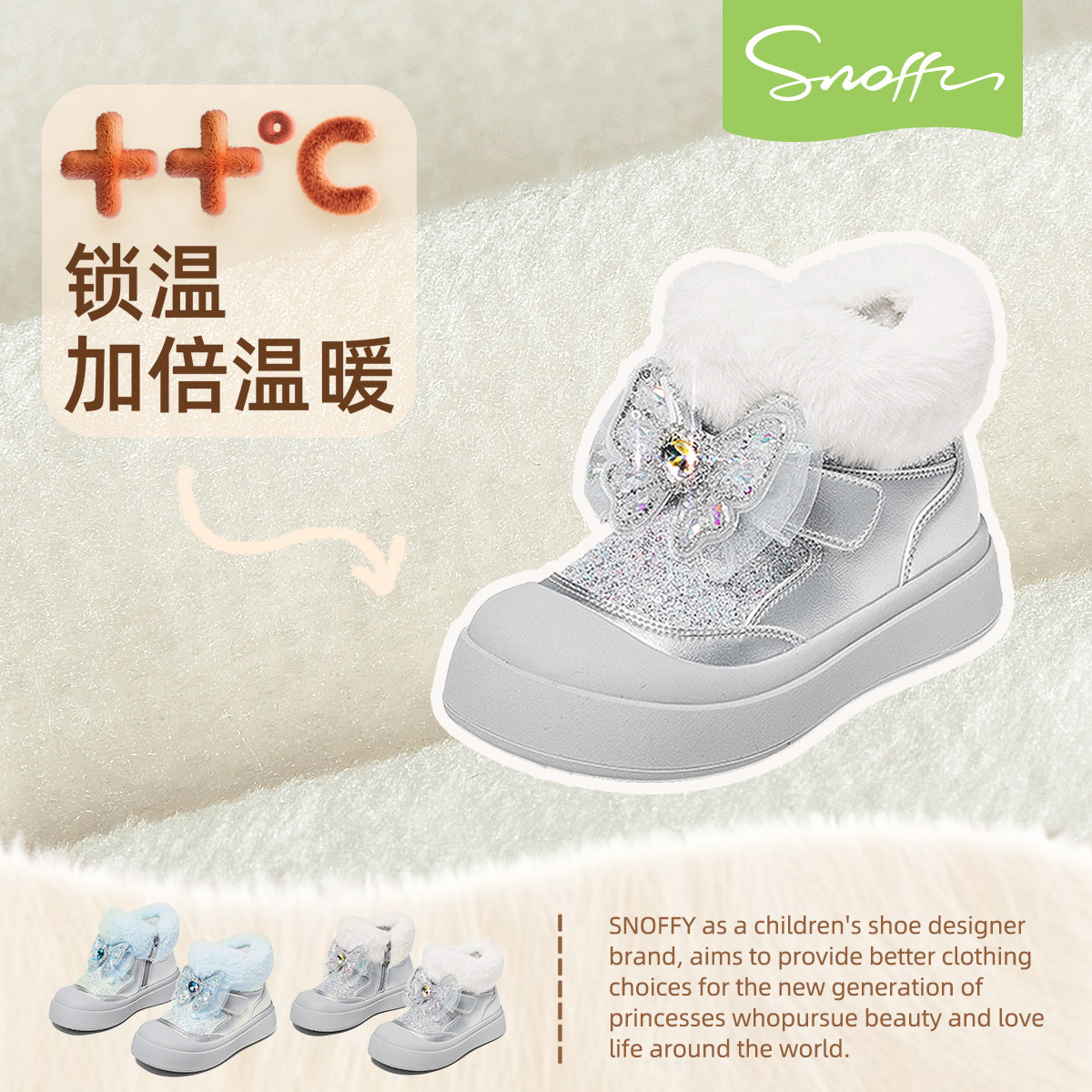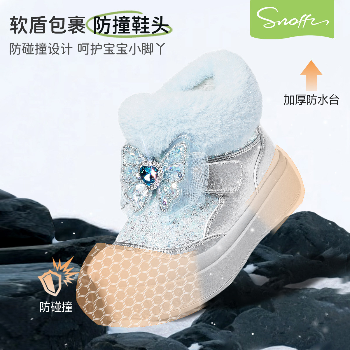 斯纳菲女童雪地靴冬季新款小女孩水晶公主鞋加厚保暖高帮运动鞋