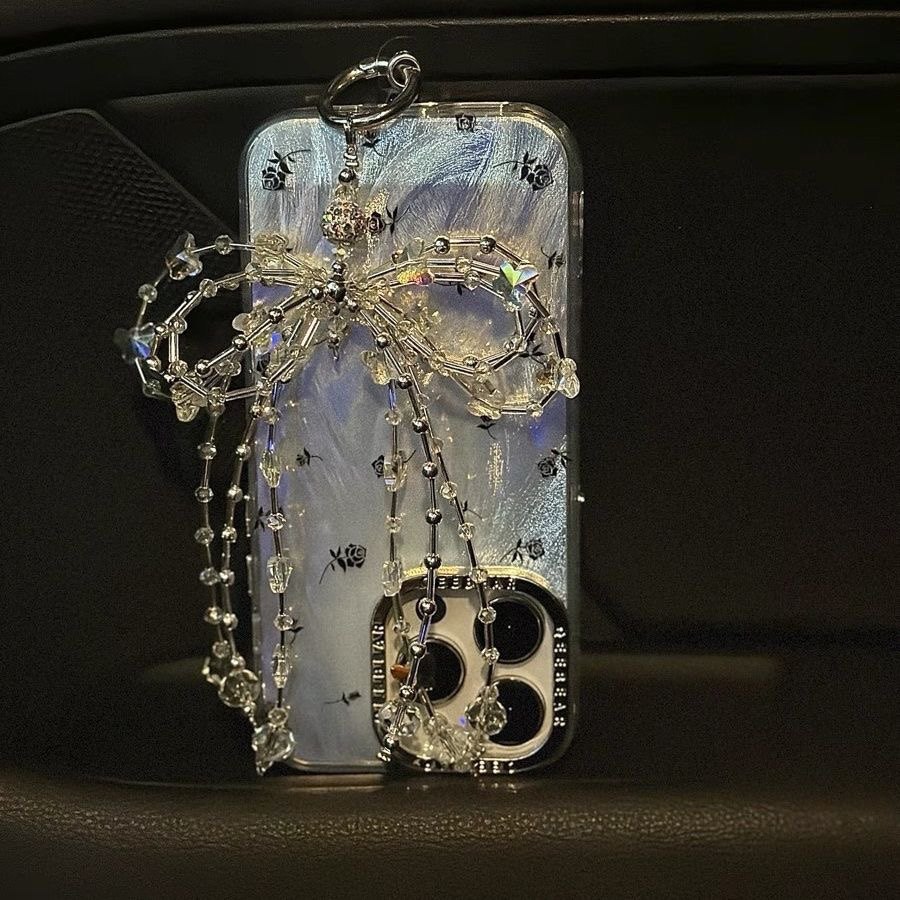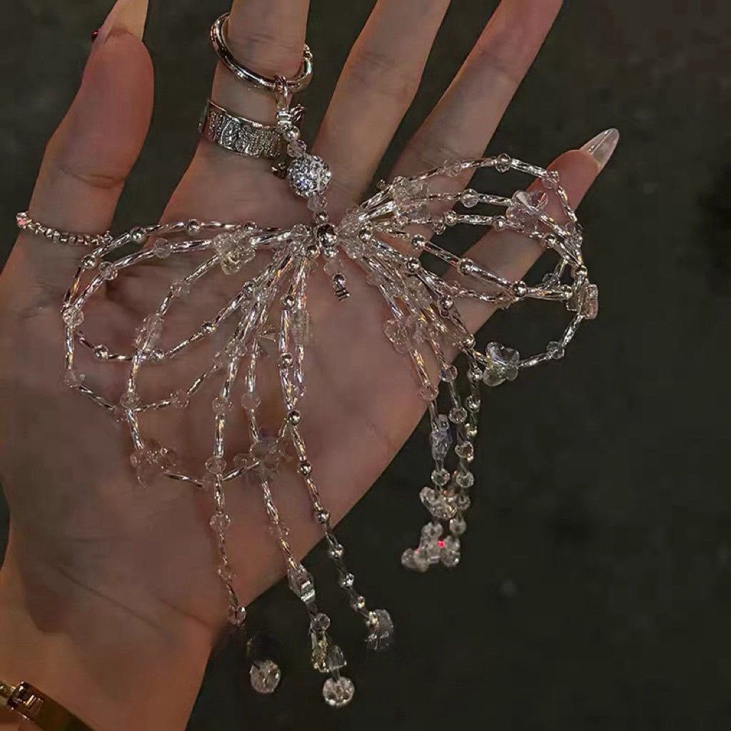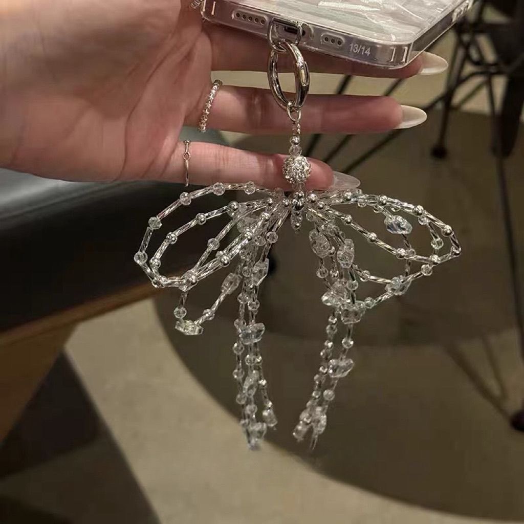 ins气质高级感大蝴蝶结少女包包挂件通用链串珠链条链挂绳钥