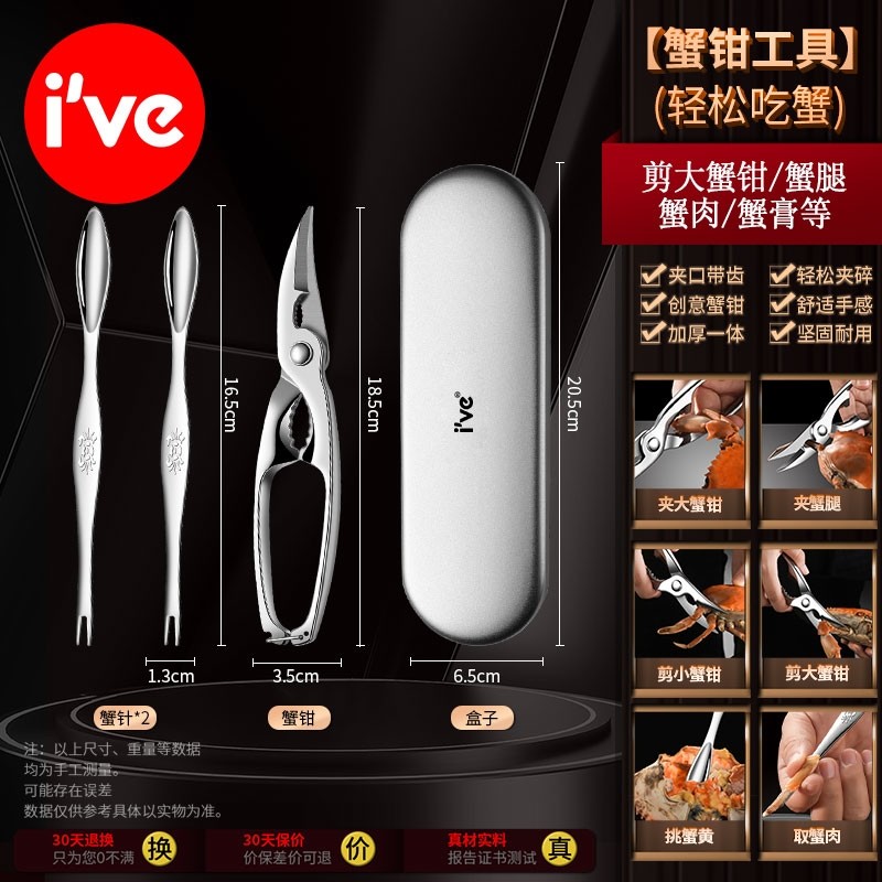 吃蟹工具蟹八件蟹钳夹子吃螃蟹专用不锈钢三件套拆剪大闸蟹神器