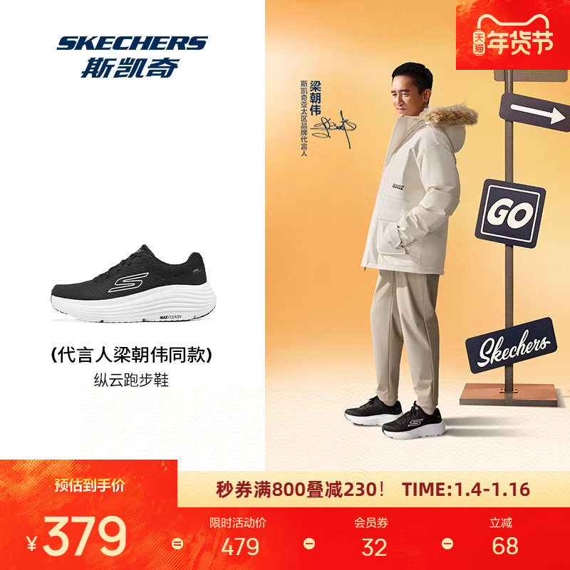 斯凯奇纵云跑鞋男女同款情侣鞋黑色运动鞋减震透气散步跑步休闲鞋