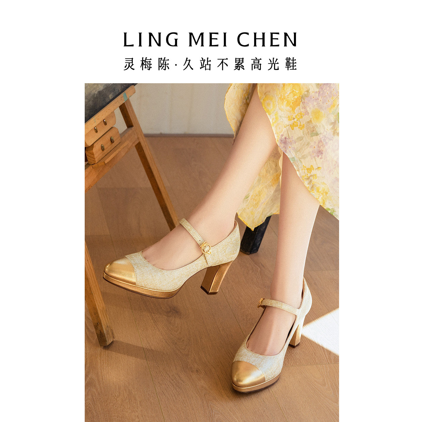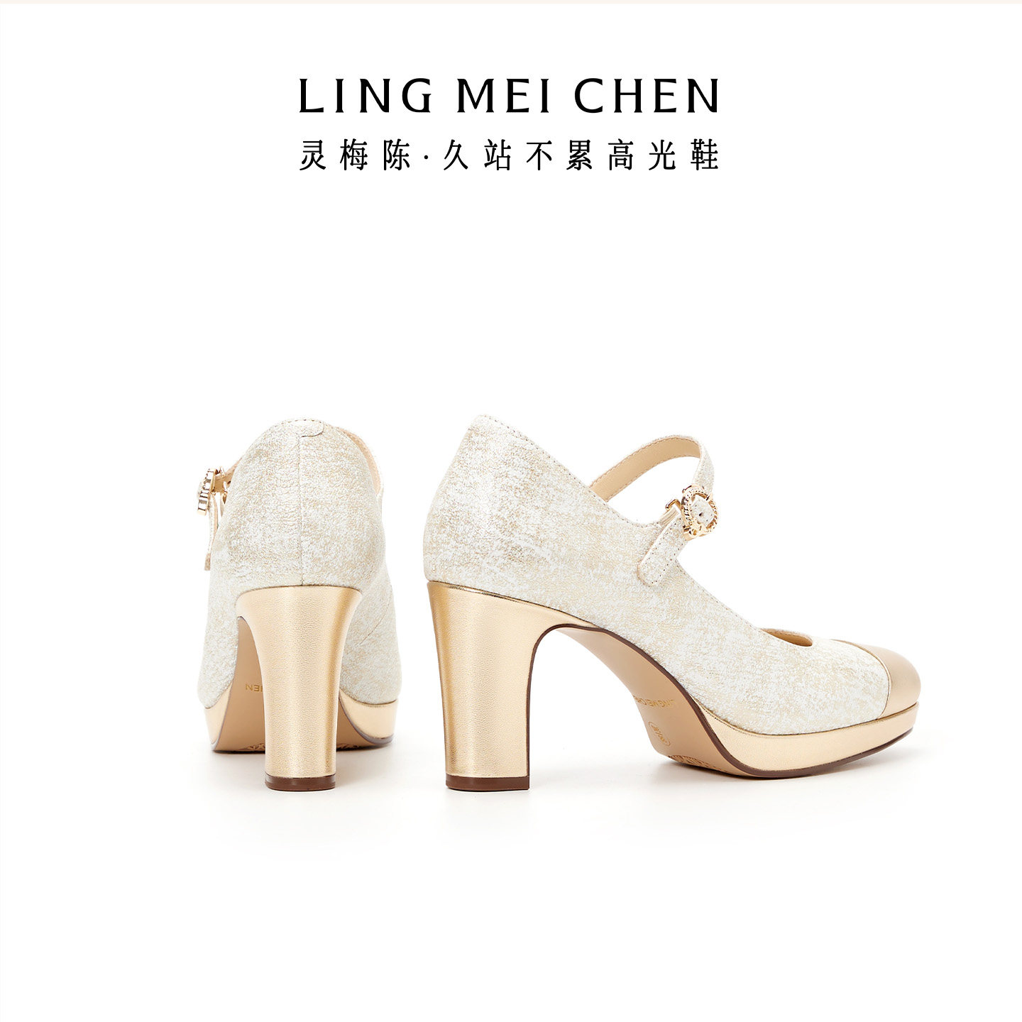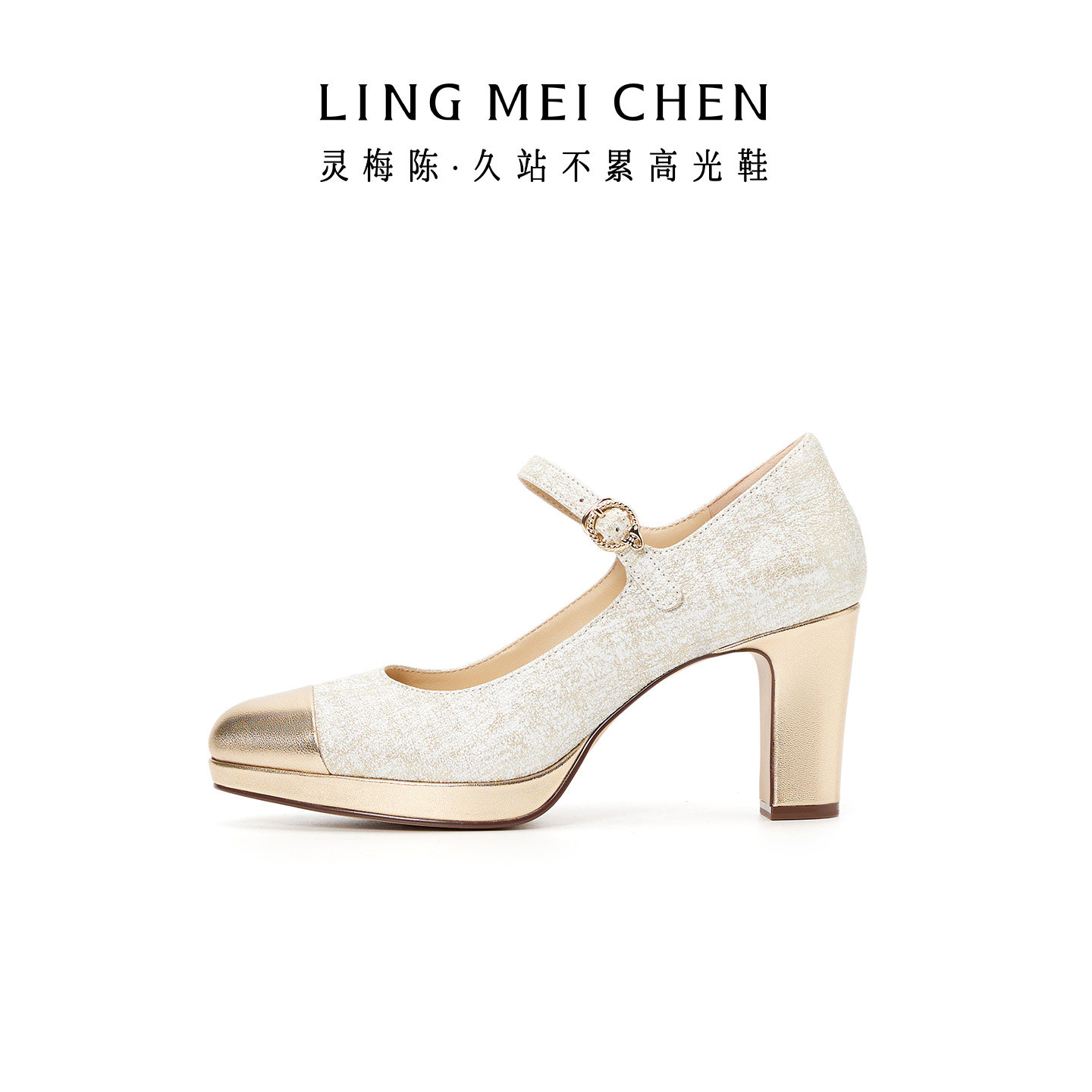 灵梅陈高光鞋2026春新款高跟鞋厚底粗跟玛丽珍单鞋真皮防水台婚鞋