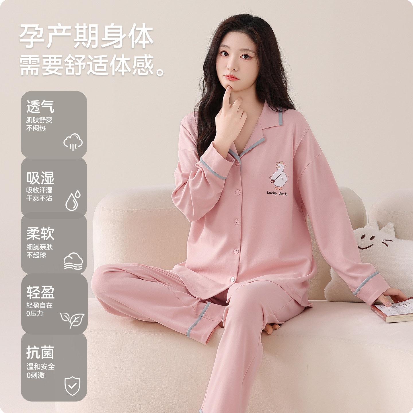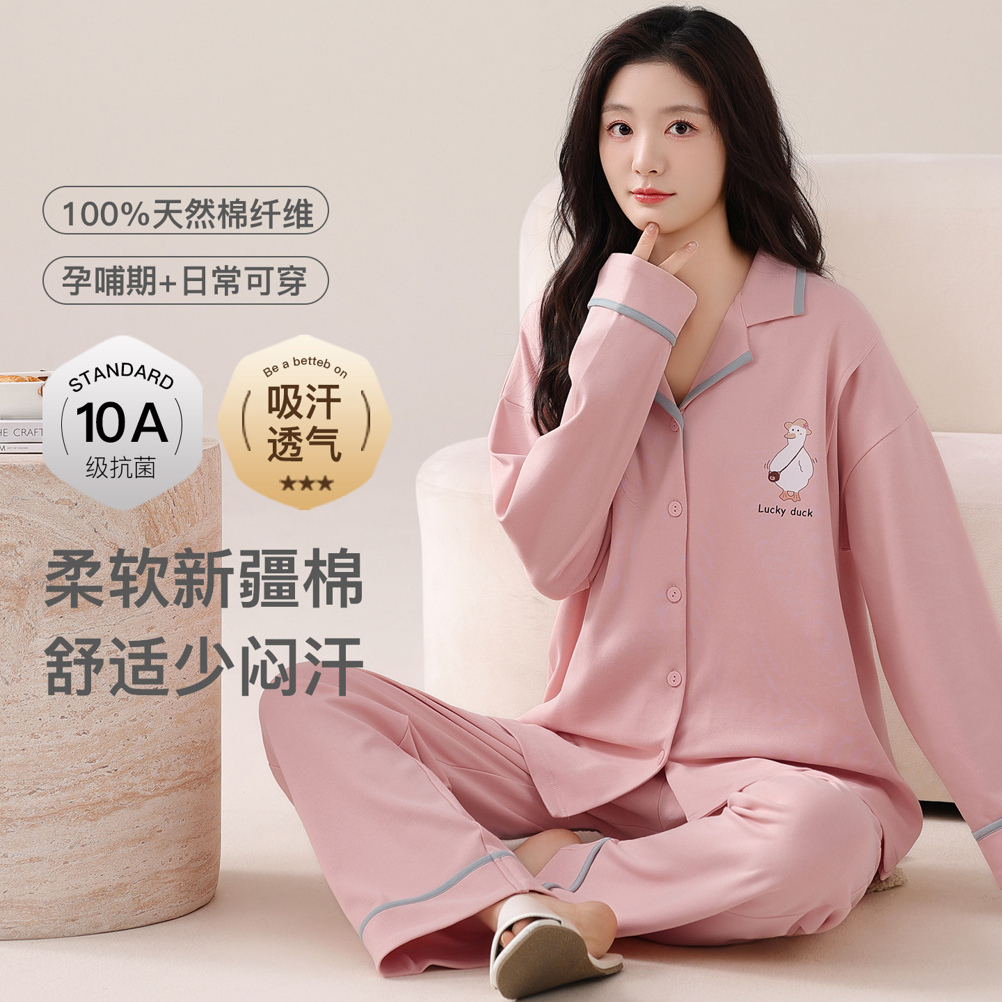 都市丽人月子服10A纯棉春秋厚款产后孕妇睡衣喂奶哺乳家居服套装