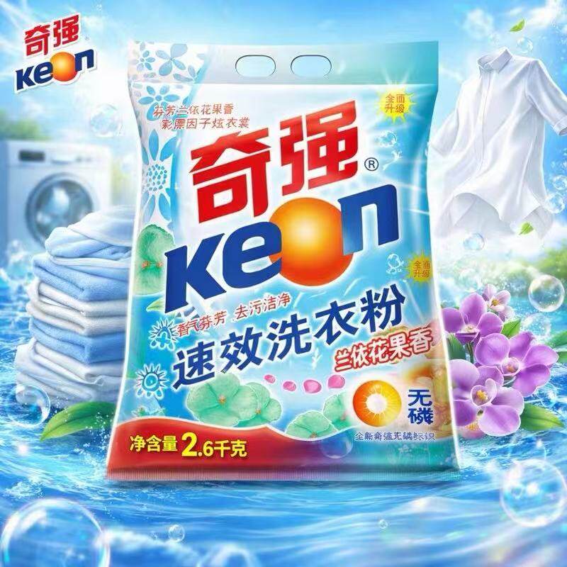 洗衣粉奇强速效无磷配方去污洁净洗衣粉家用实惠装2600g